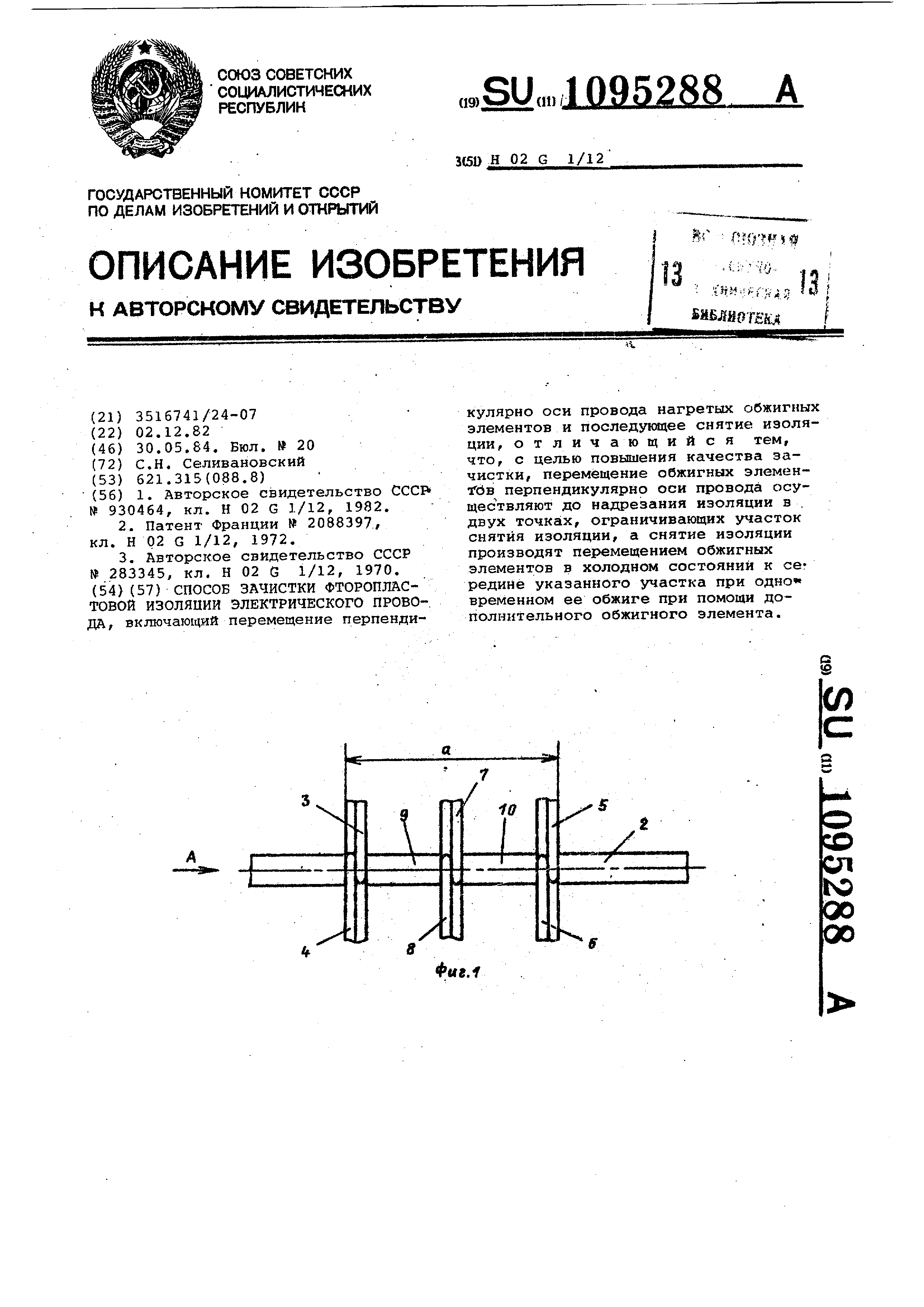.1 и 8. По достижении заданной длины зон 11 и 12 зачистки изоляции обжигные