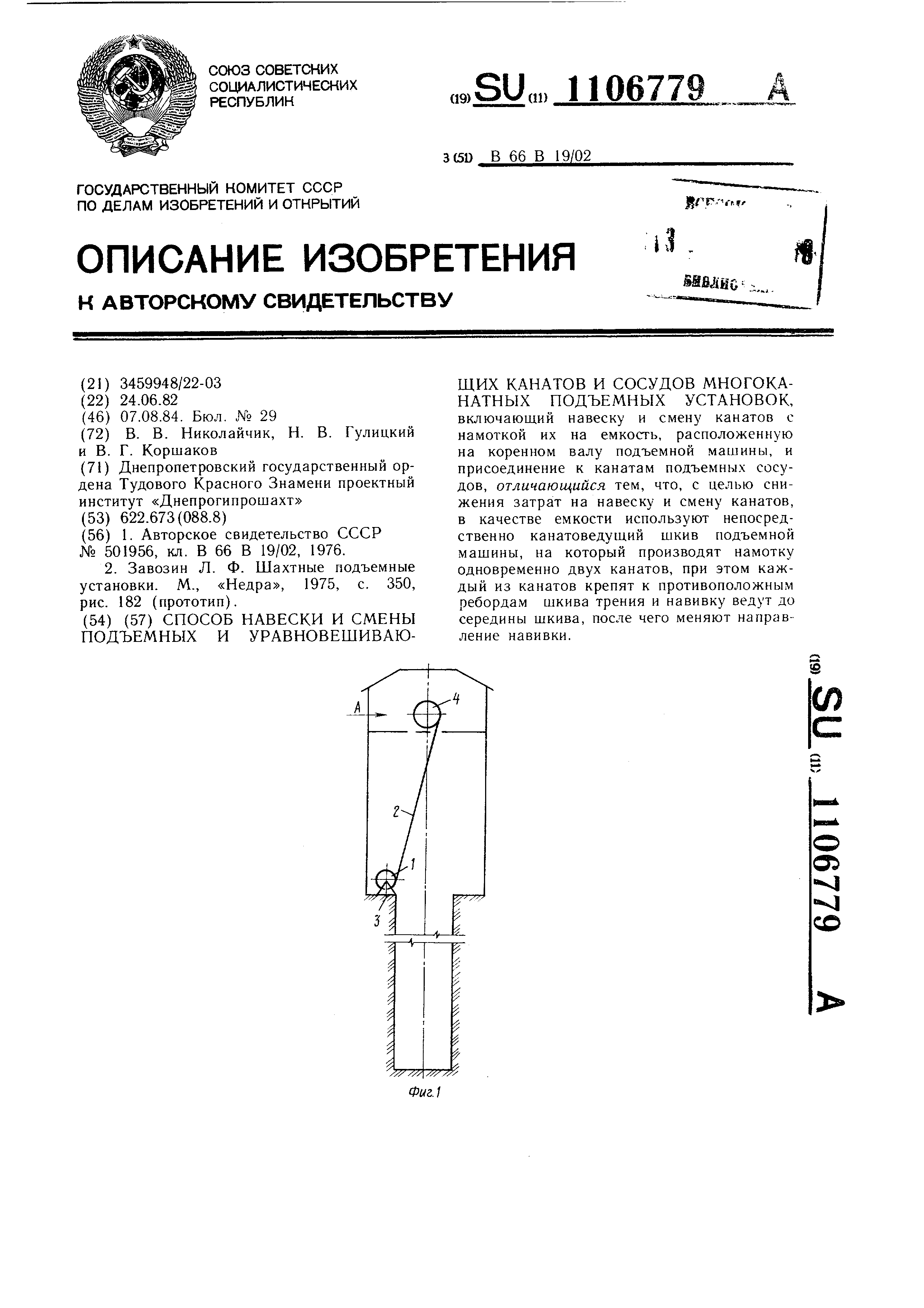 СПОСОБ НАВЕСКИ И СМЕНЫ ПОДЪЕМНЫХ И УРАВНОВЕШИВАЮЩИХ КАНАТОВ И СОСУДОВ МНОГОКАНАТНЫХ