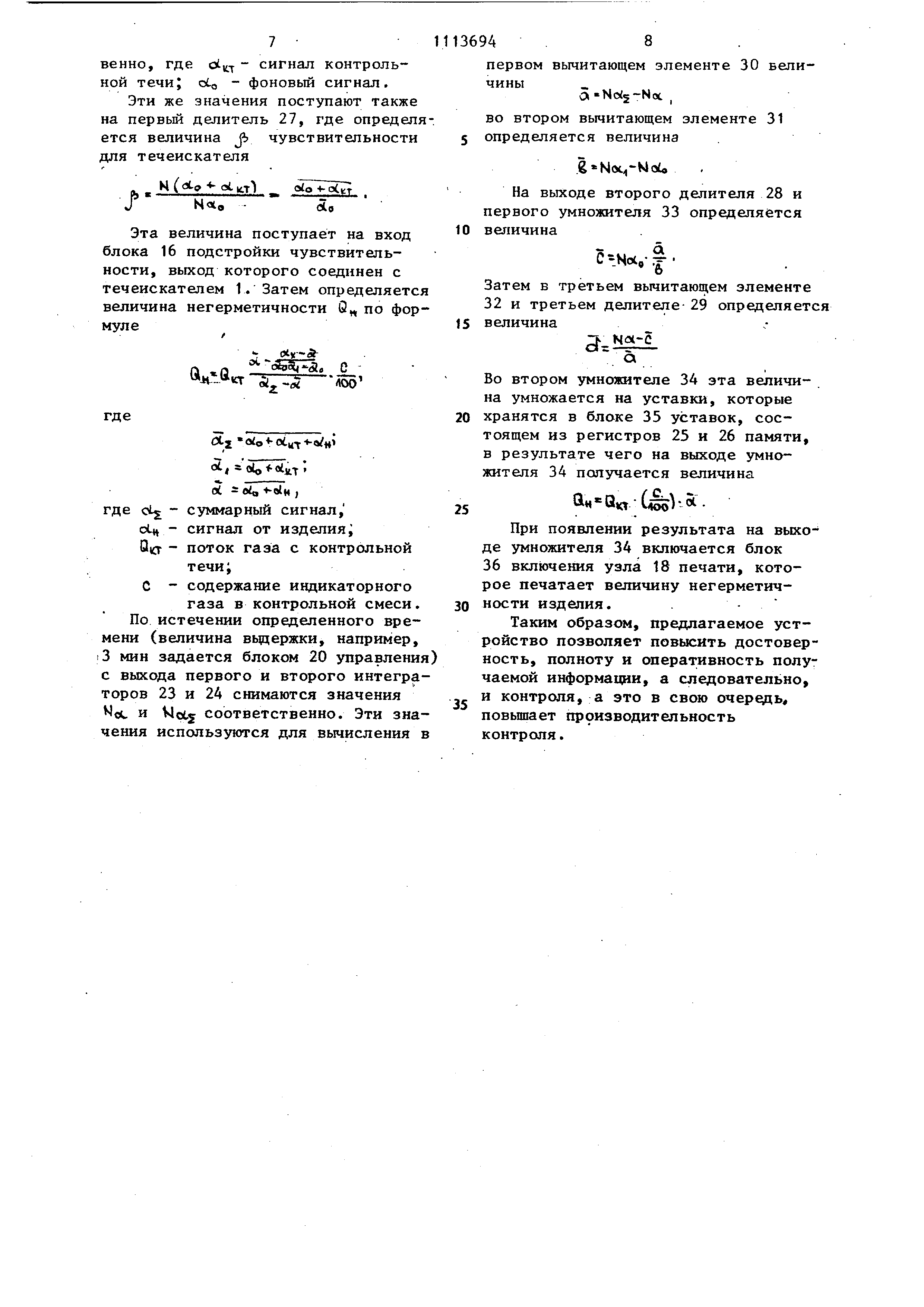 36 вклк1чения узла 18 печати, которое печатает величину негерметичности изделия..Таким
