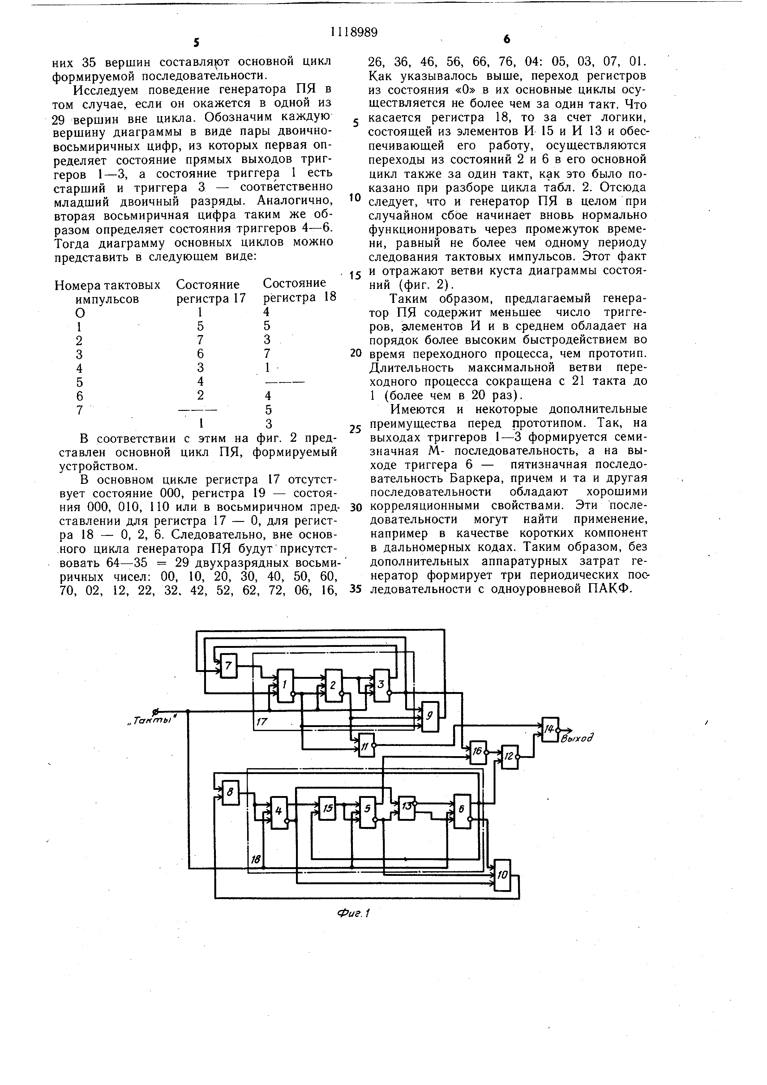 5 с учетом устранения состояния 000, возврат регистра 18 в основной цикл при случайном сбое гарантируется не более чем за один период следования тактовых импульсов .