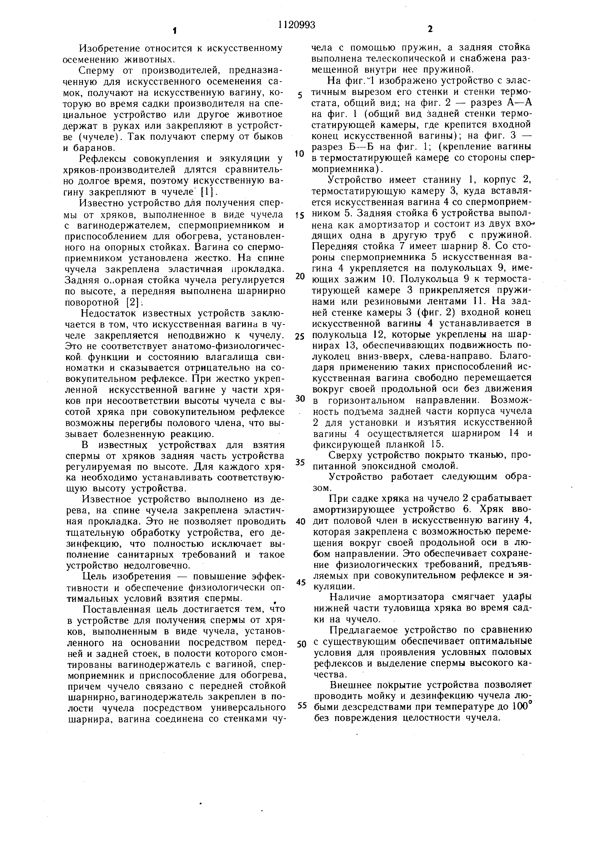 Передняя стойка 7 имеет щарнир 8. Со стороны спермоприемника 5 искусственная вагина