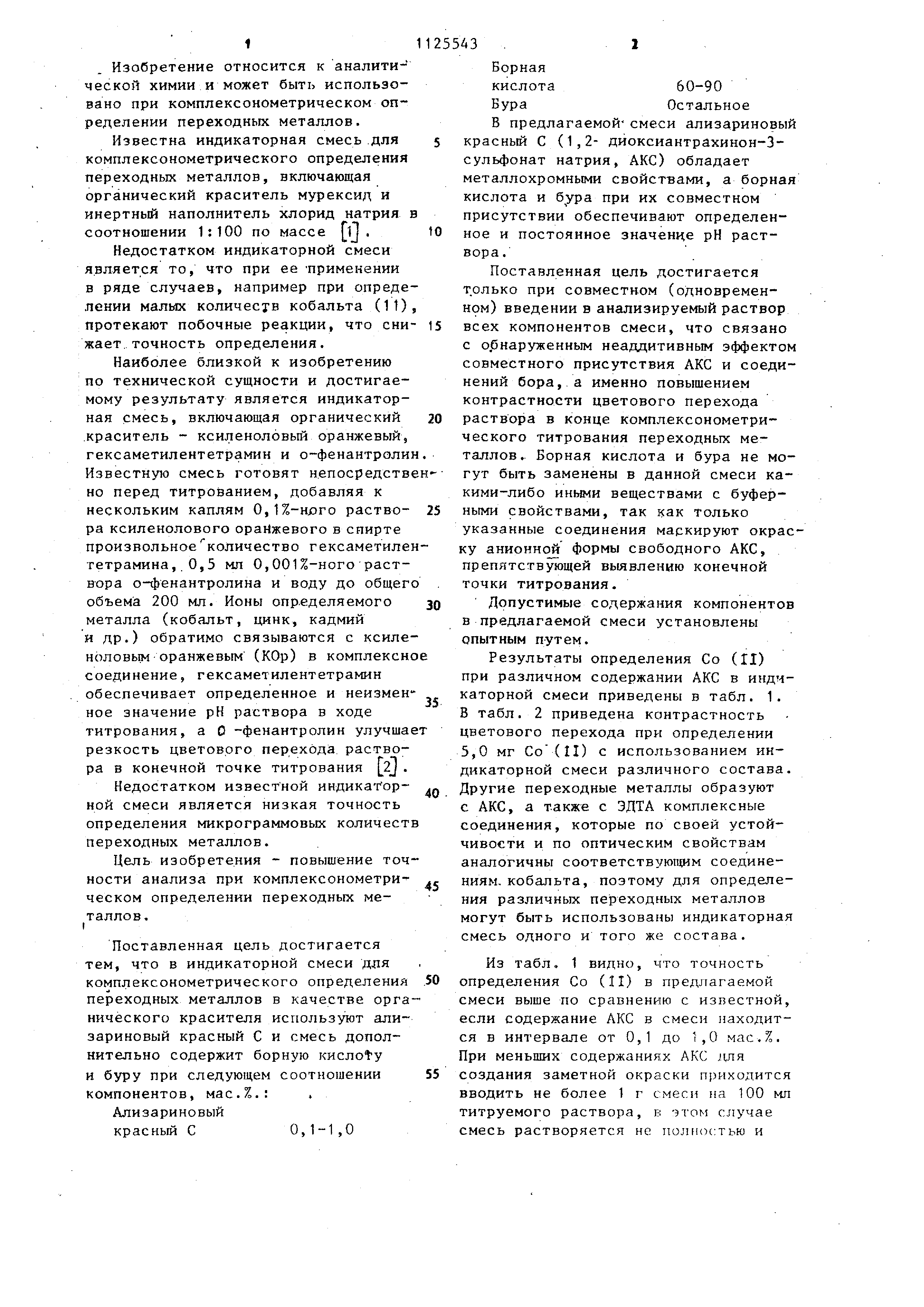 при комплексонометрическом определении переходных металлов. Известна индикаторная смесь для