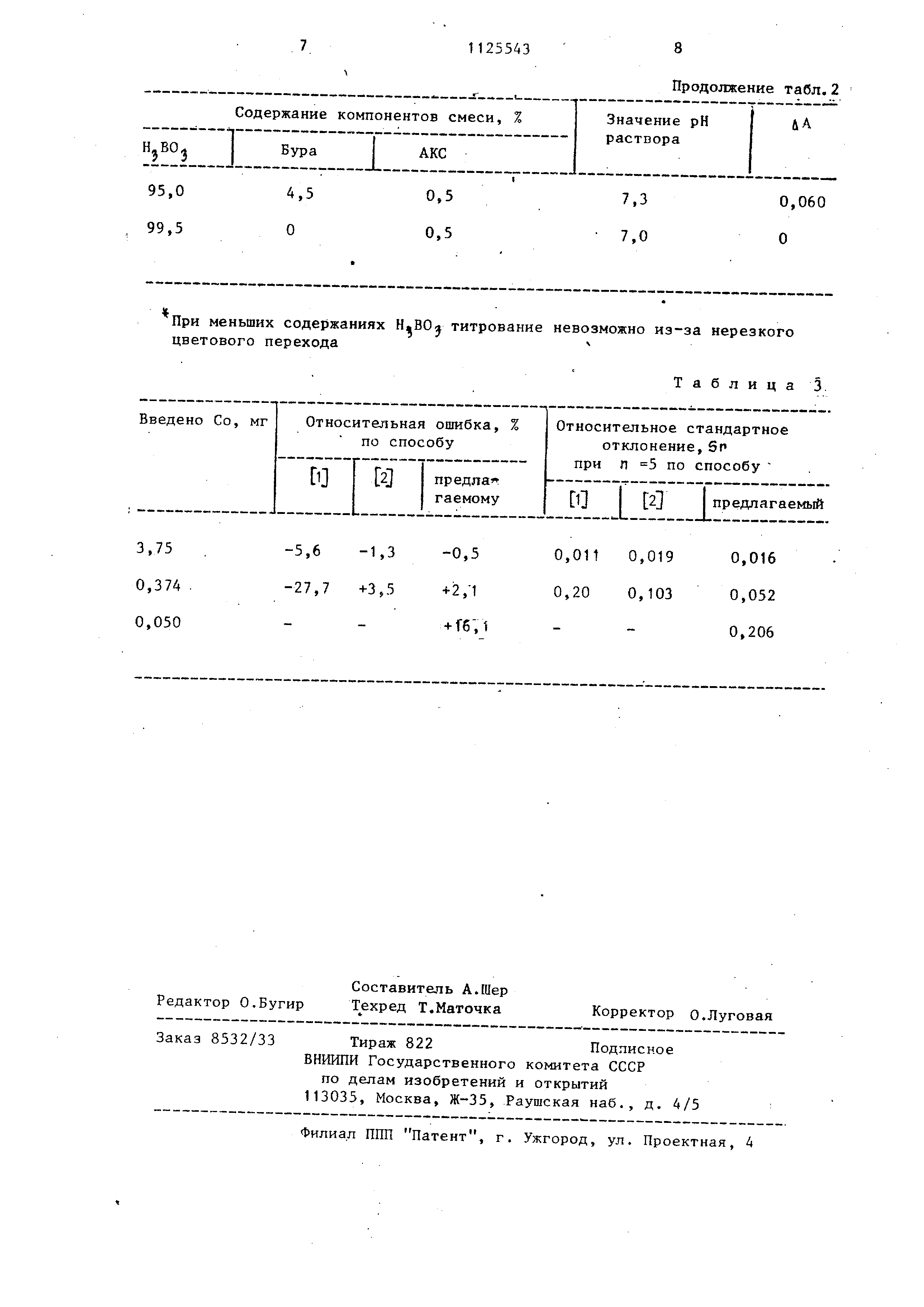 .разных способов определения Со (II) приведены в табл. 3. Изобретение увеличивает точность анализа (табл. 3) и может найти