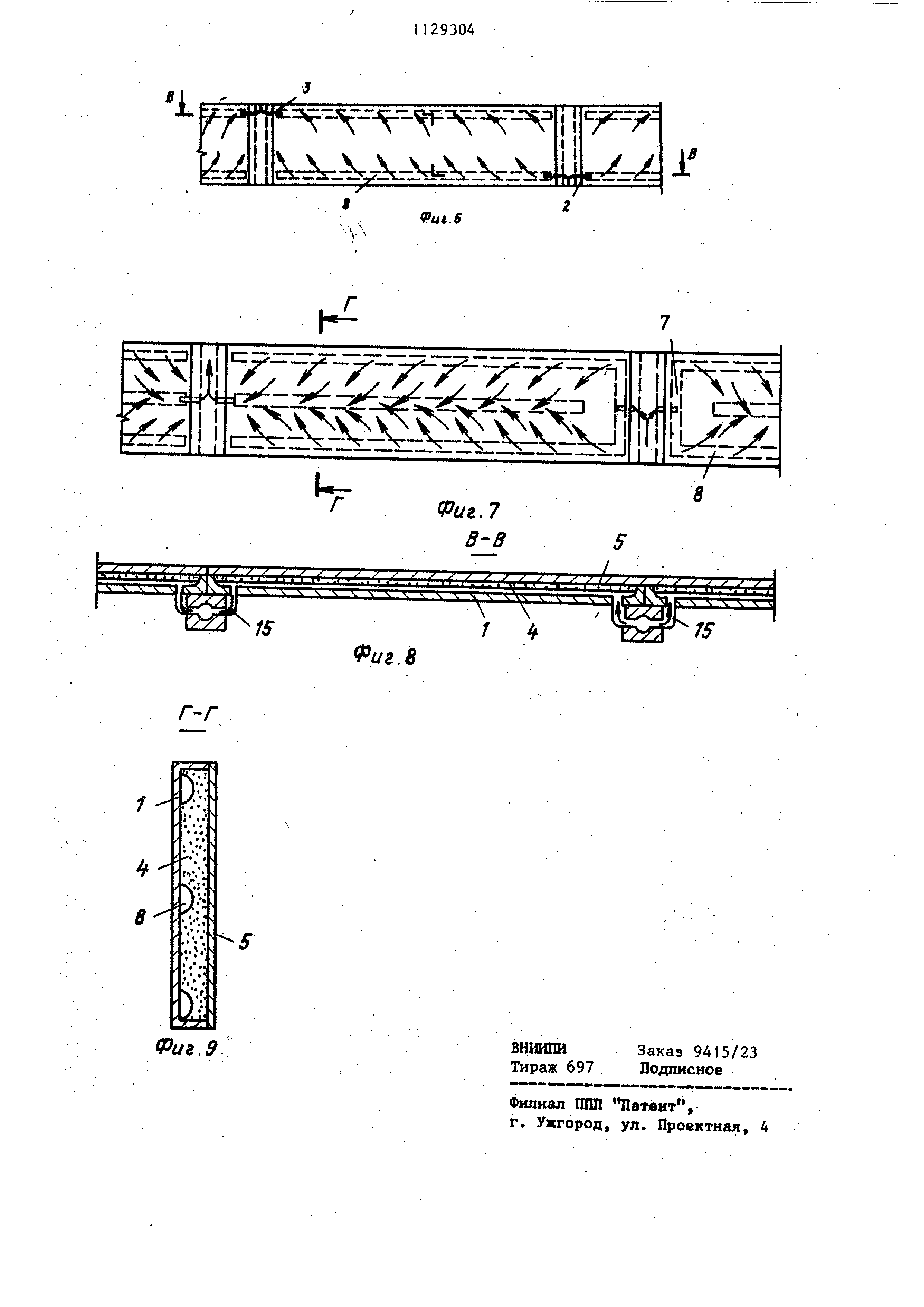 фиг. 8 - разрез В-В на фиг. 6; на фиг. 9 - разрез Г-Г на фиг. 7. Стеновое включает несупщй