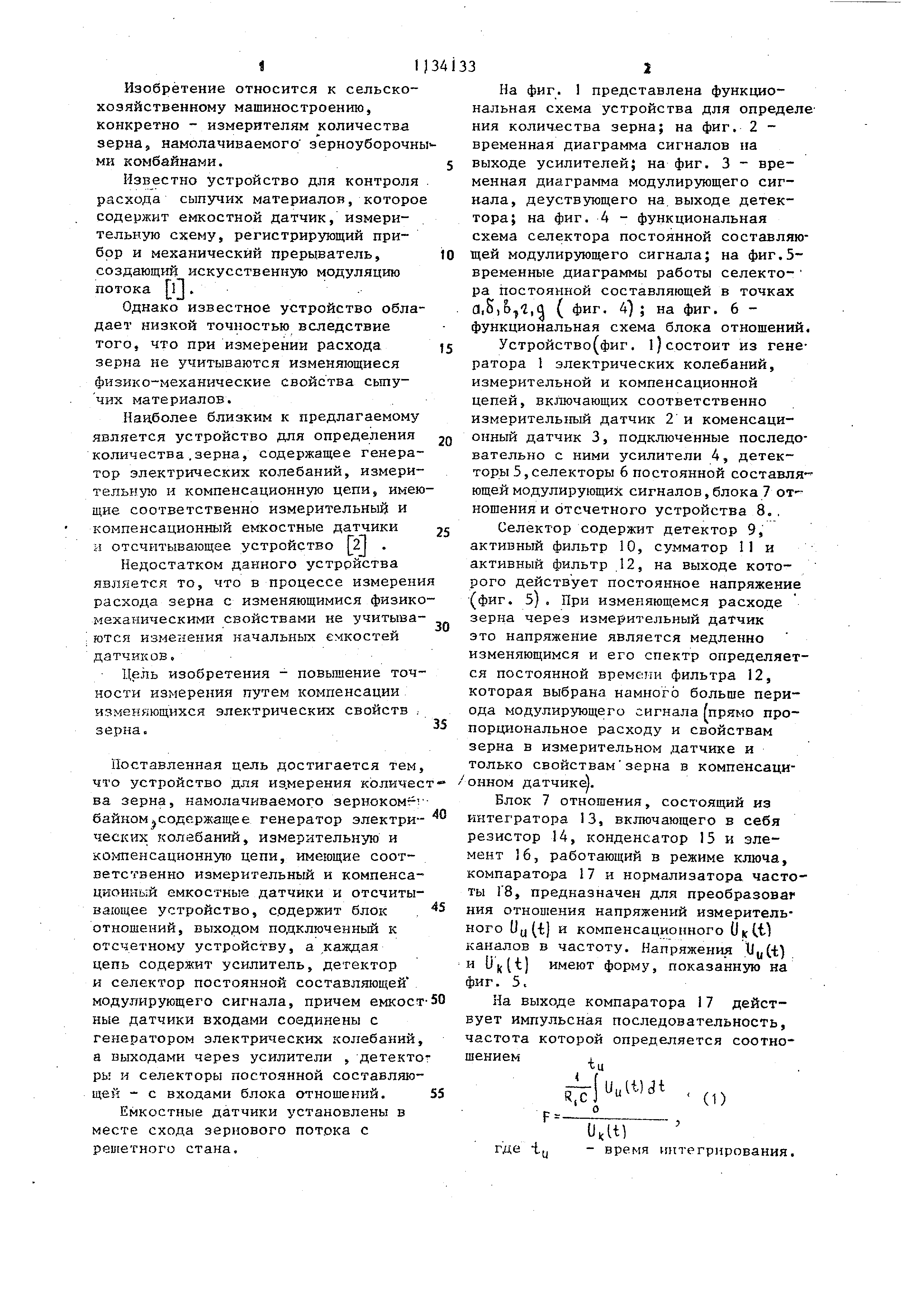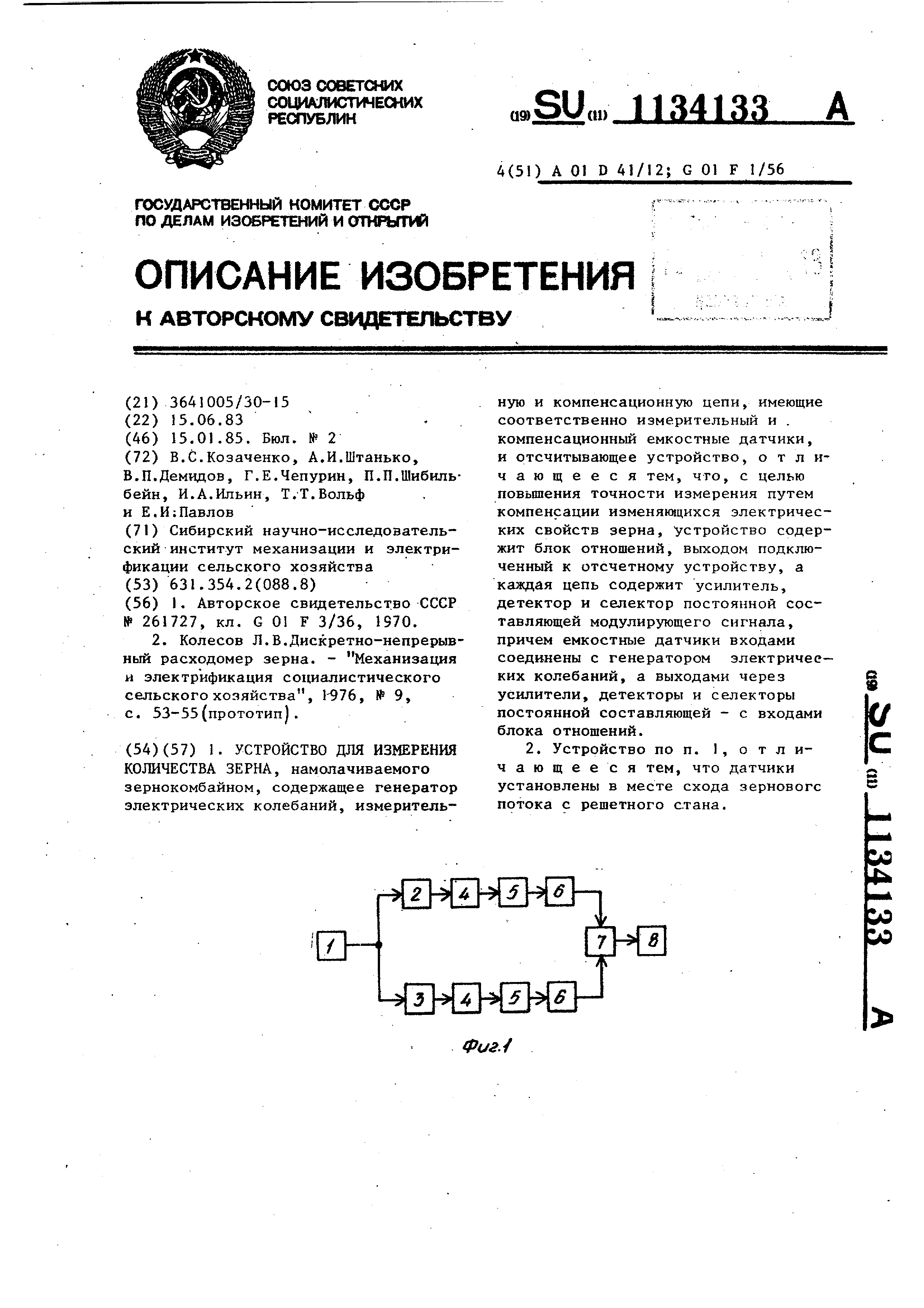 1. УСТРОЙСТВО ДЛЯ ИЗМЕРЕНИЯ КОЛИЧЕСТВА ЗЕРНА, намолачиваемого зернокомбайном, содержащее генератор электрических колебаний, измерительную