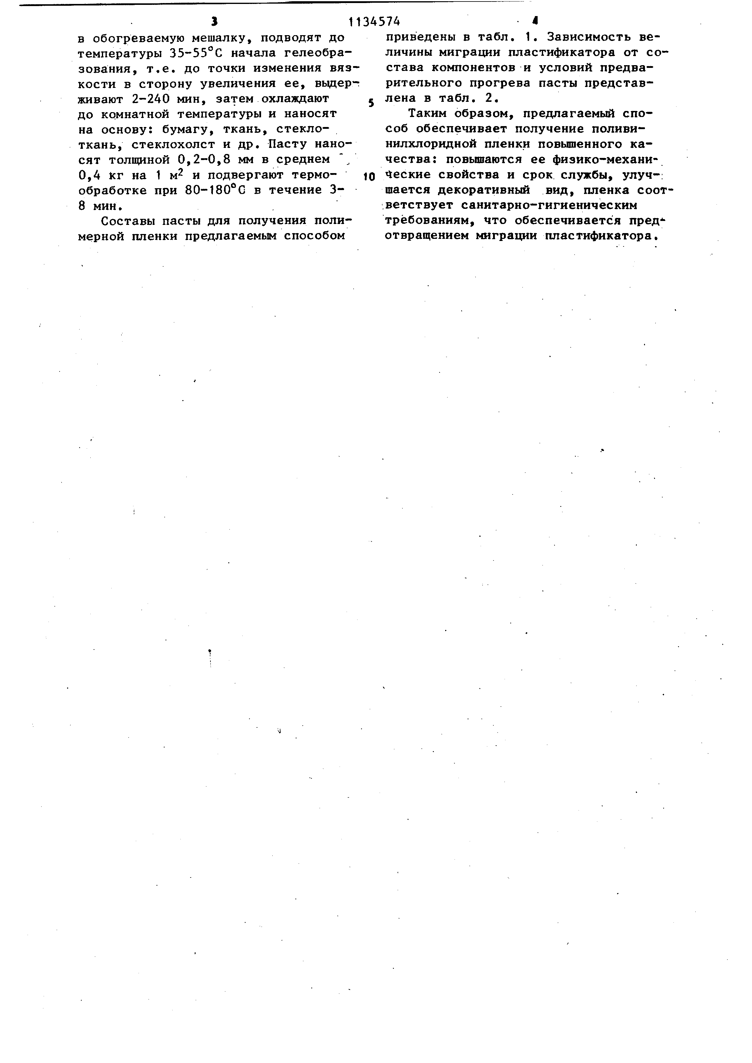 санитарно-гигиенических требований. Цель изобретения - предотвращение миграции пластификатора.