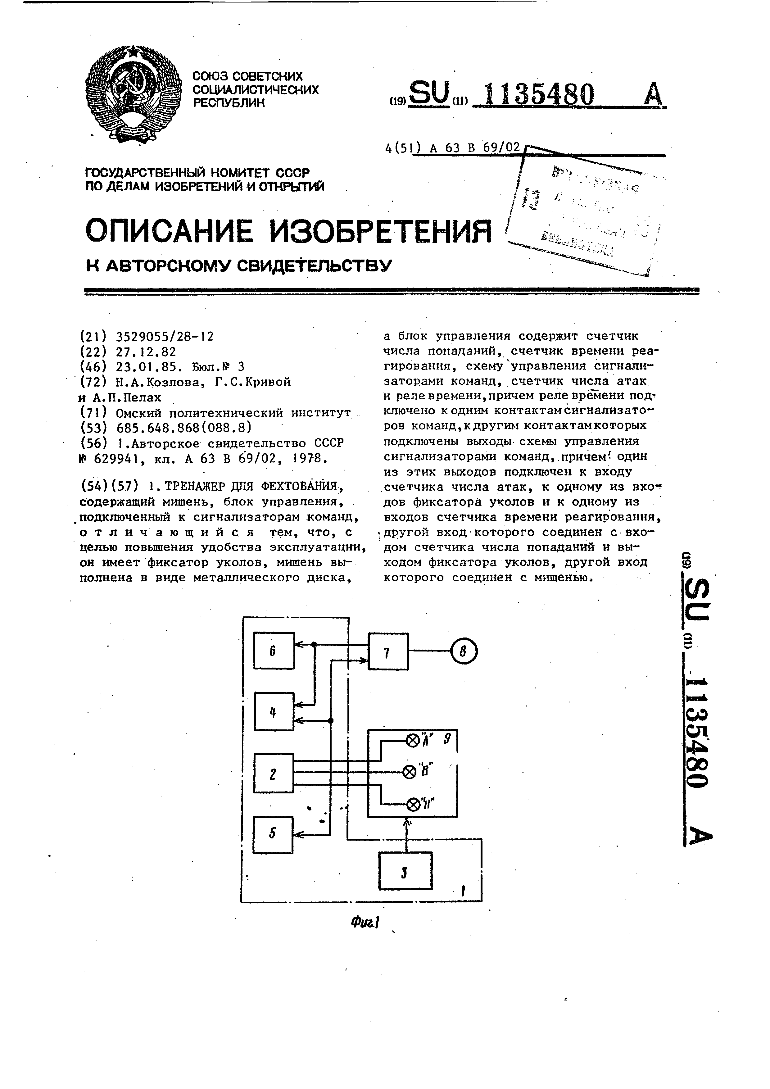 для тренировок спортсменов-фехтовальщиков . ,, Известен тренажер- для фехтования, 5 содержащий оружие и блок управления,
