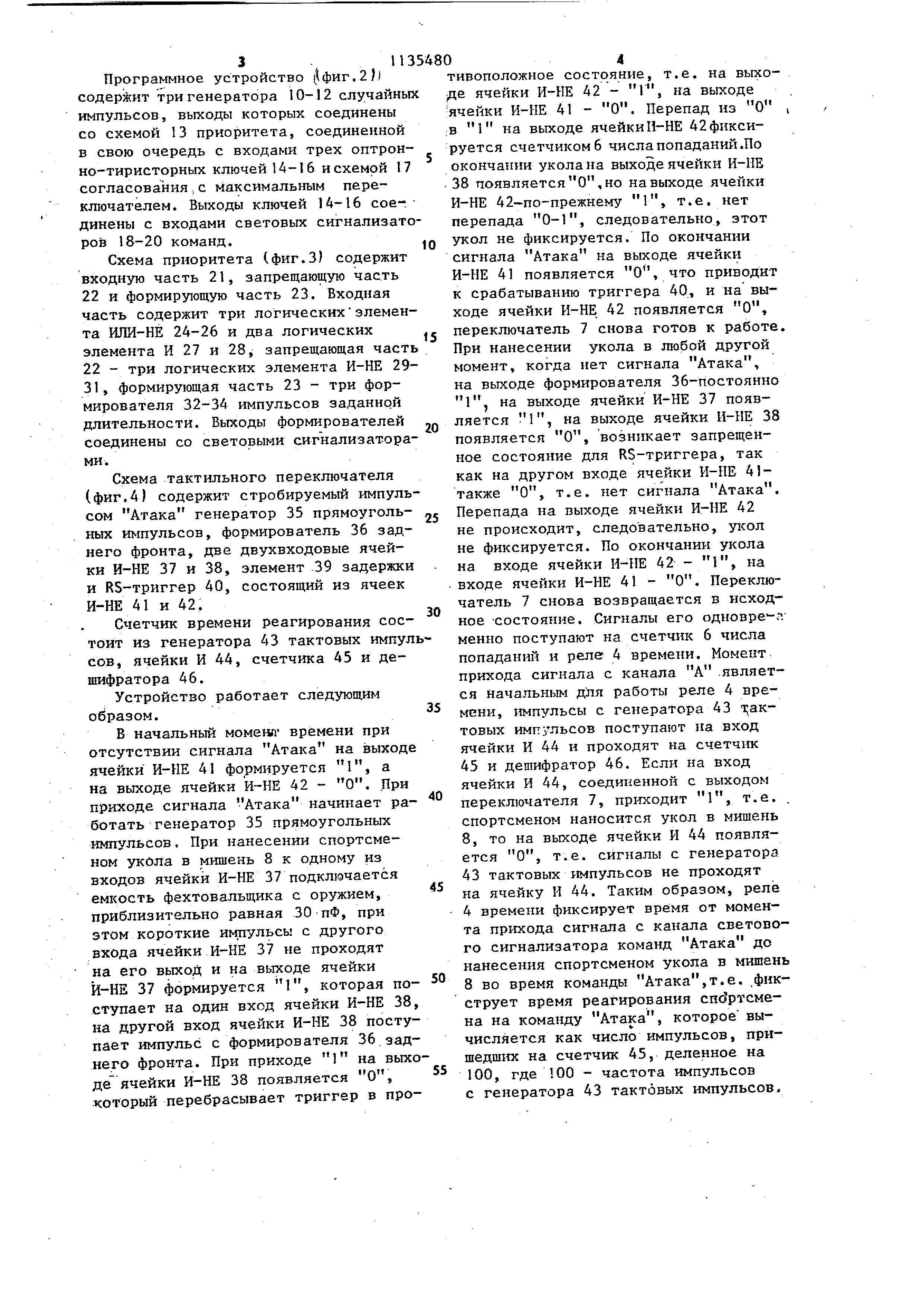 соединенный с контактными пластинами и световыми си нализаторами мишени, и датчик защитных действий ..