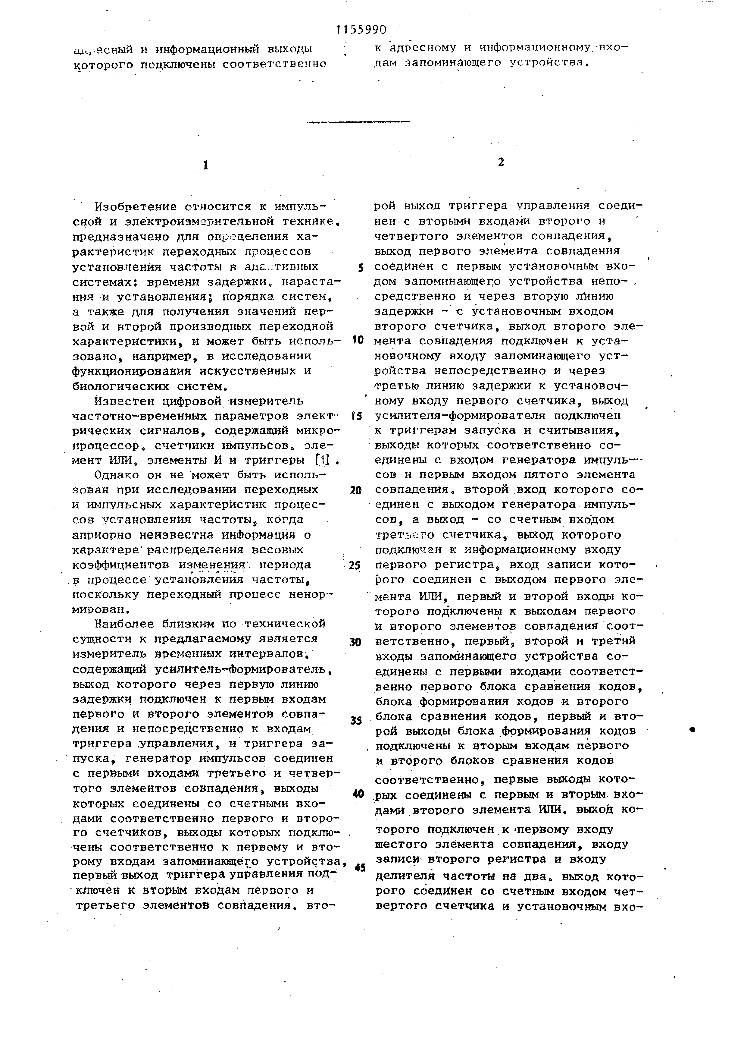 совпадения, выходы которых соединены соответственно со счетными входамипервого и второго счетчиков, а выходы счетчиков подключены соответственно