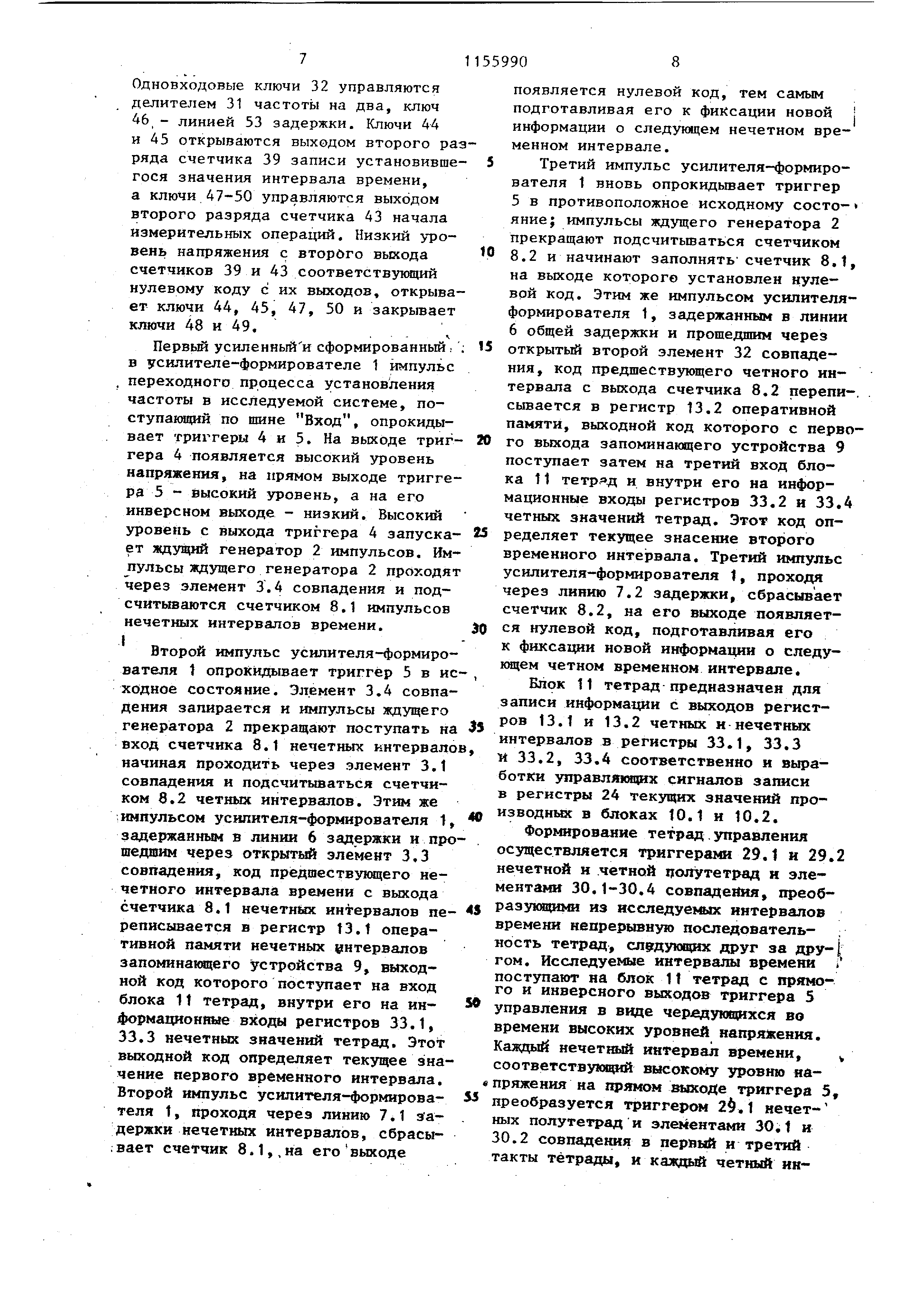 записывается суммарный код с выхода , дешифратора 21.3, соответствующий времени установления TVCF переходного процесса. Первый и последующие импульсы сов
