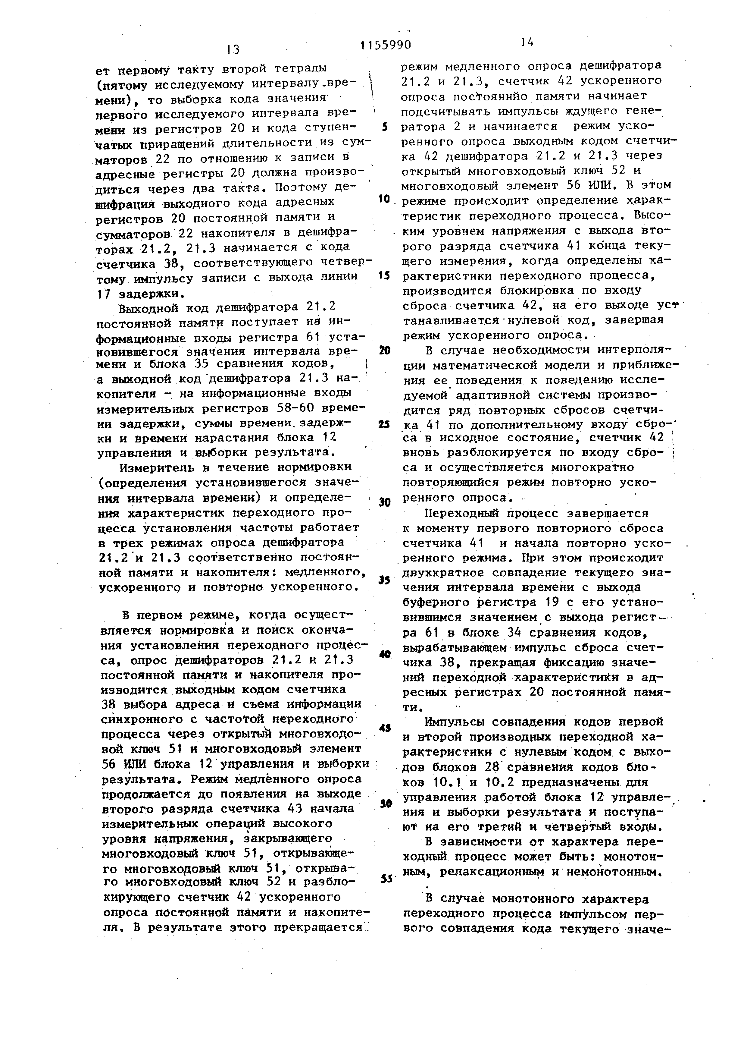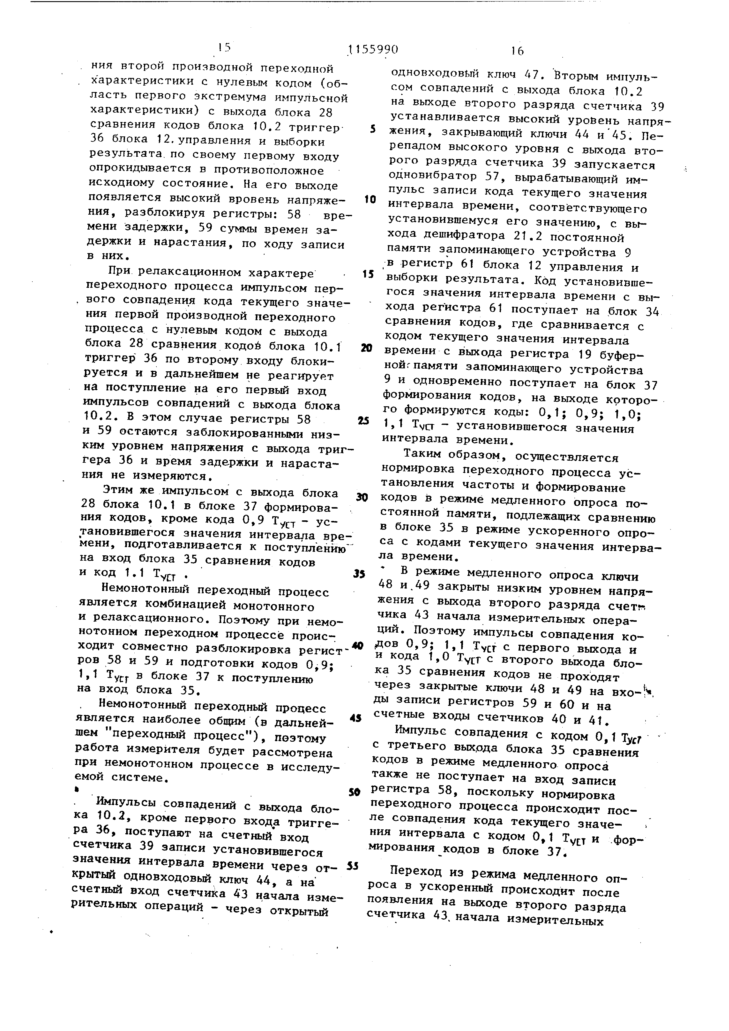 в ускоренный происходит после появления на выходе второго разряда четчика 43, начала измерительных
