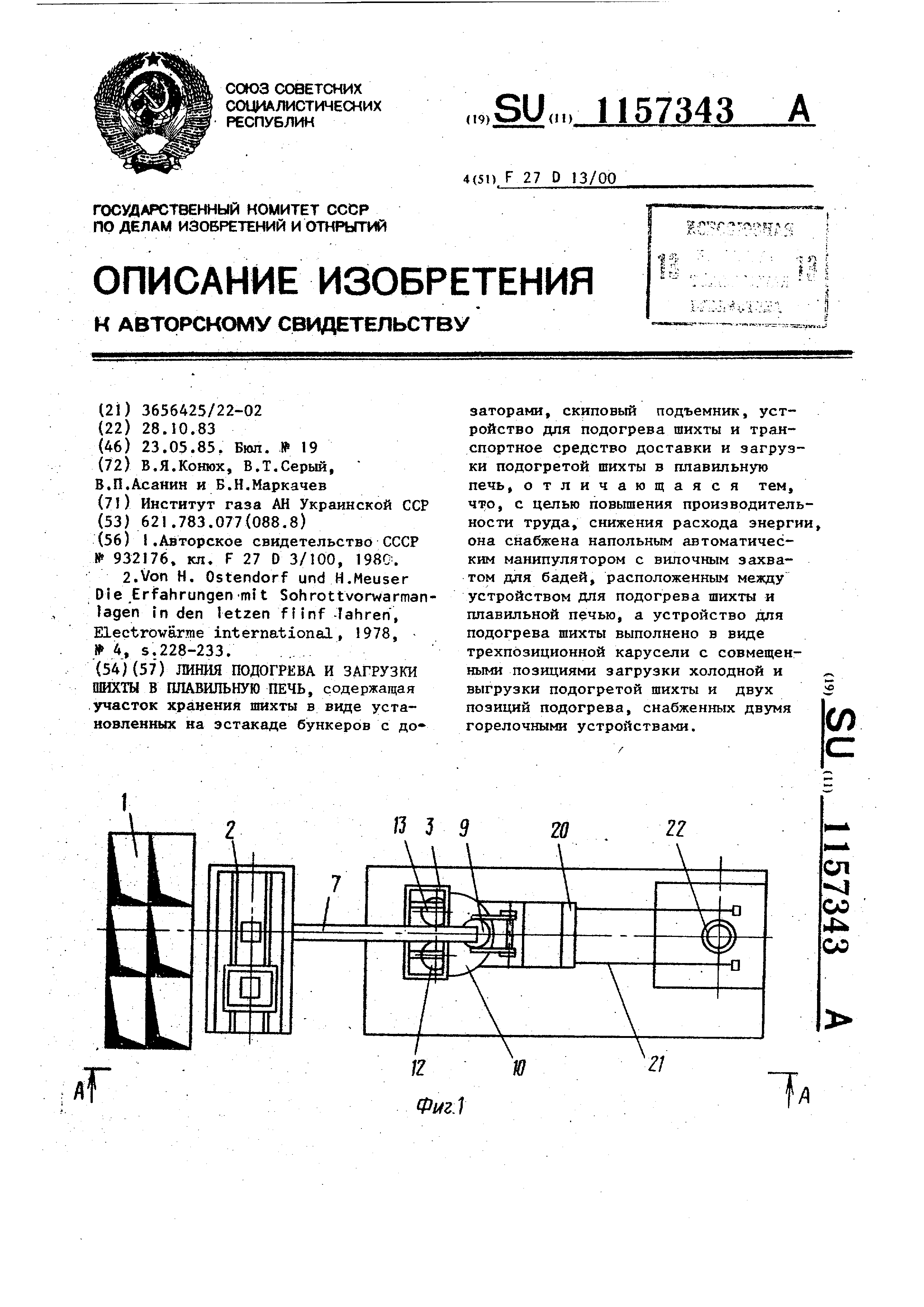 3 ное средство доставки и загрузки подогретой шихты в плавильную печь f2.