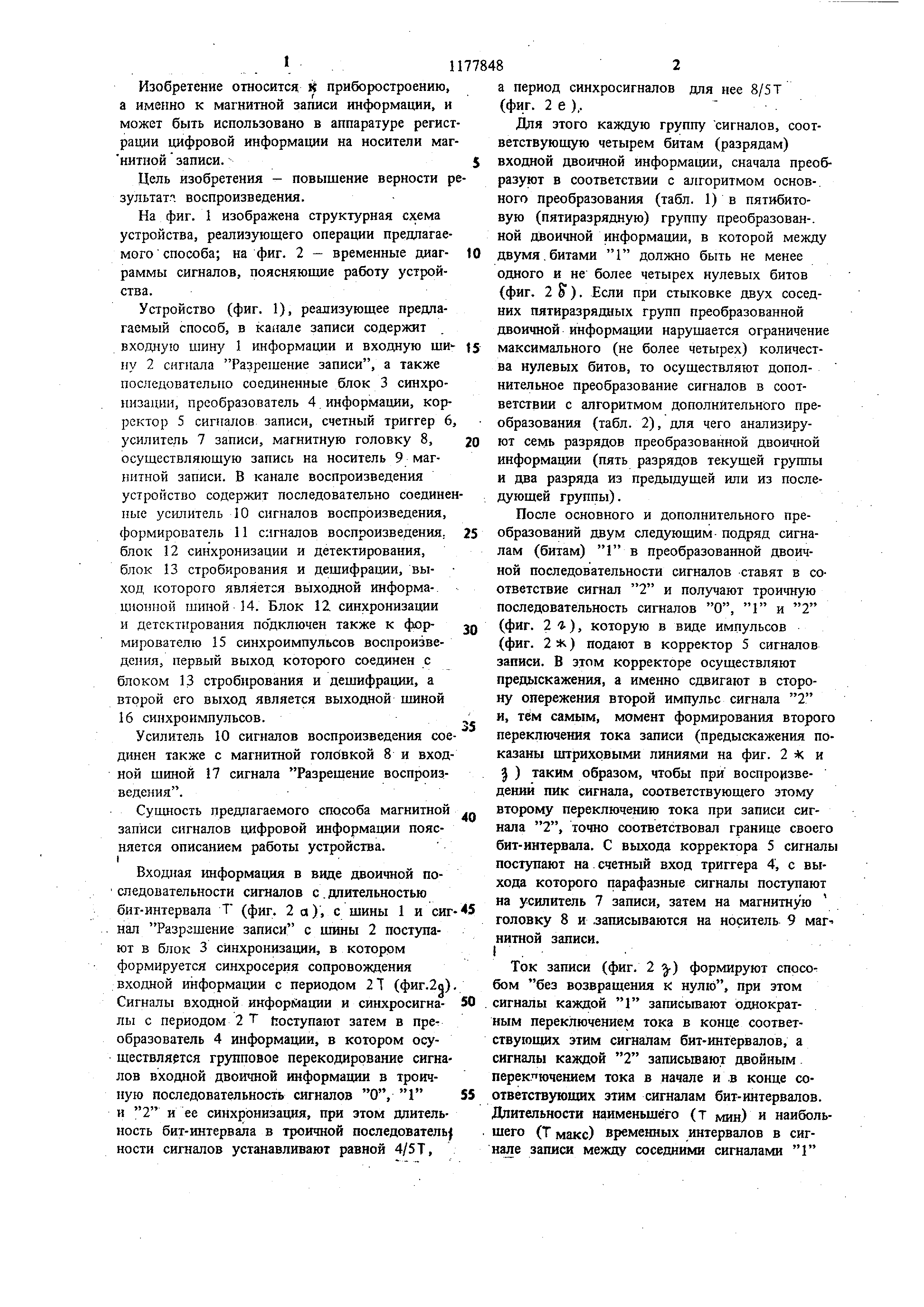 СПОСОБ МАГНИТНОЙ ЗАПИСИ СИГНАЛОВ ЦИФРОВОЙ ИНФОРМАЦИИ, при котором входную двоичную последовательность сигналов с длительностью бит-интерва