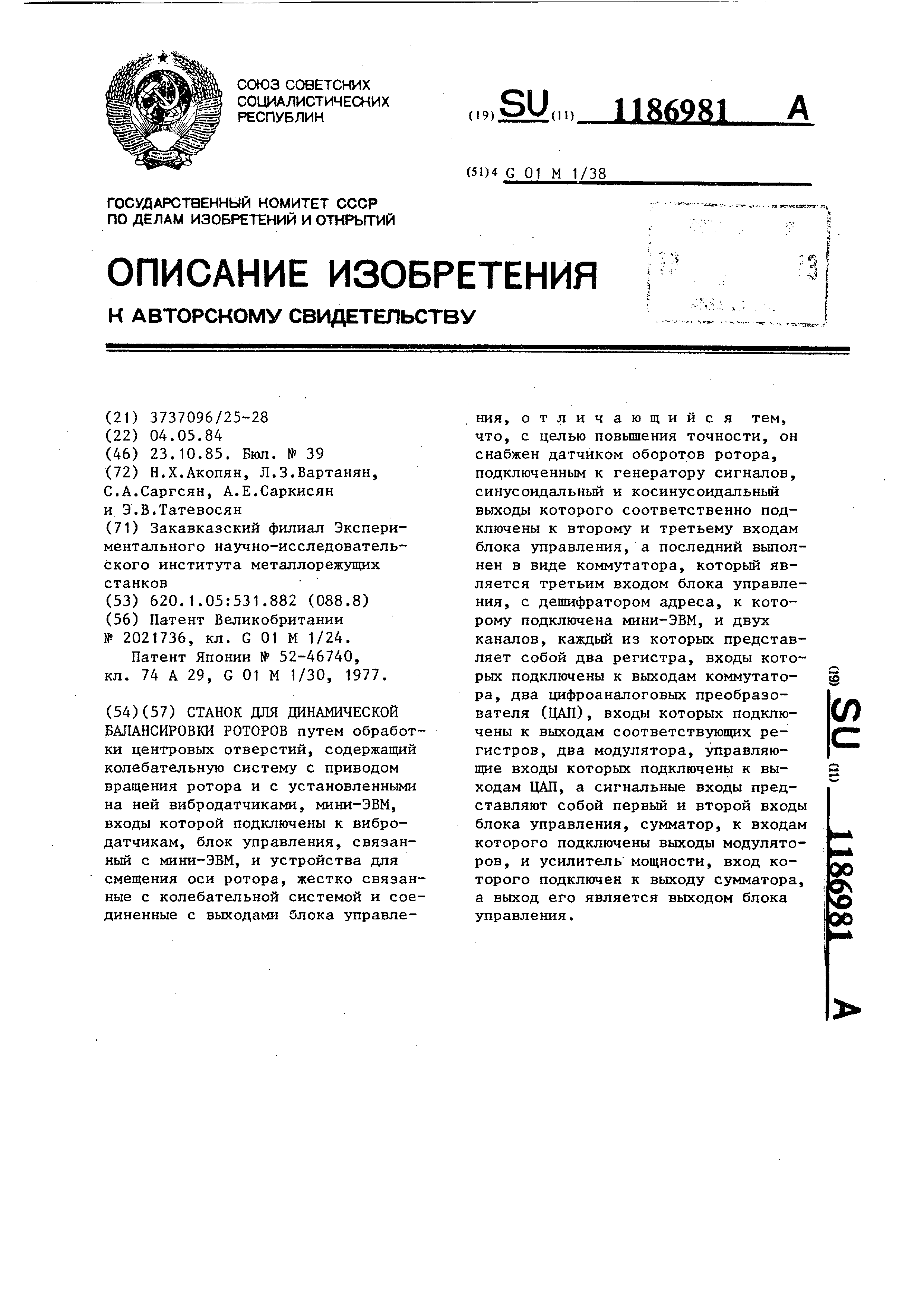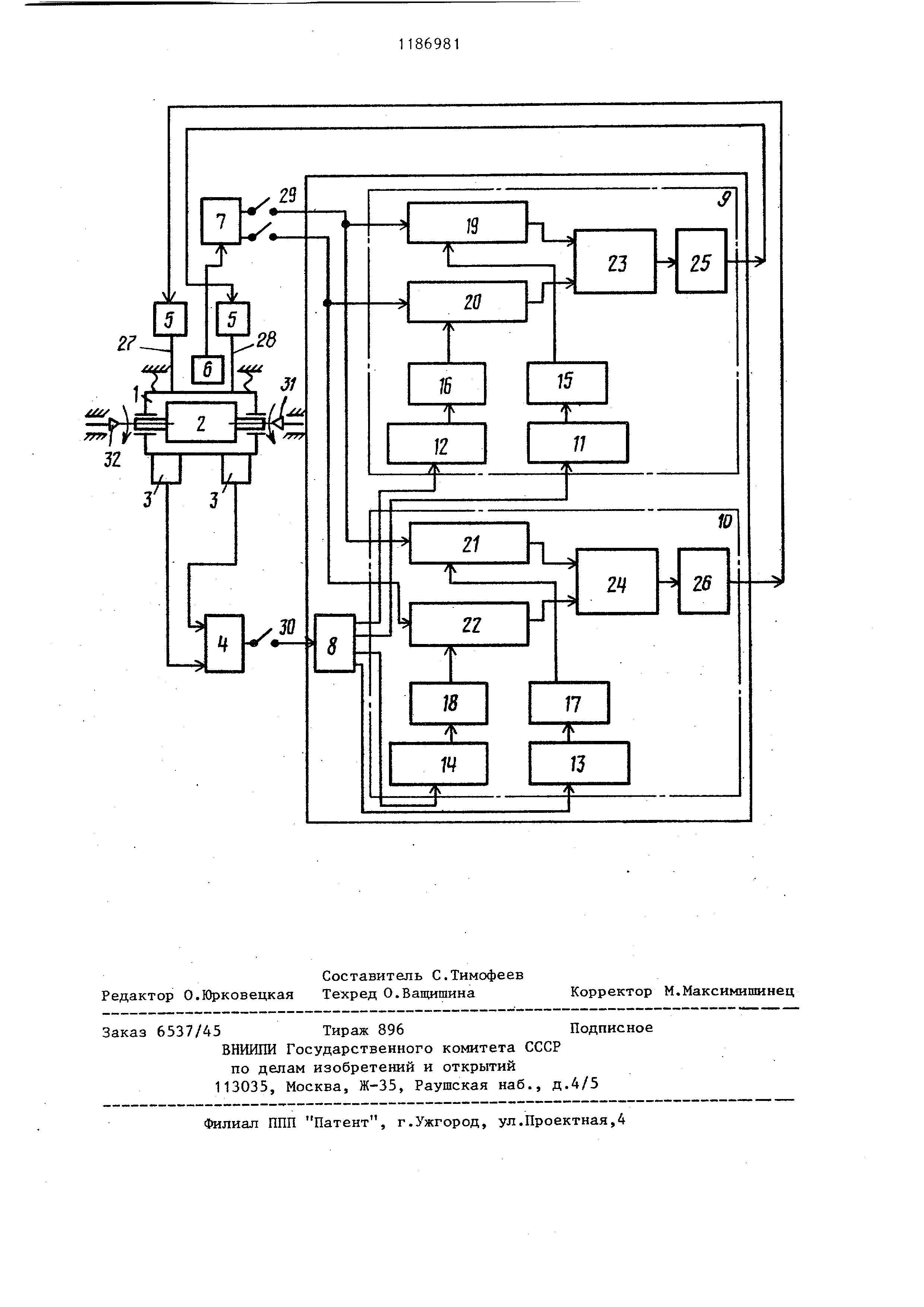 31 и 32, которые подаются в зону обработки центров. Мини-ЭВМ 4 по сигналам вибродатчиков
