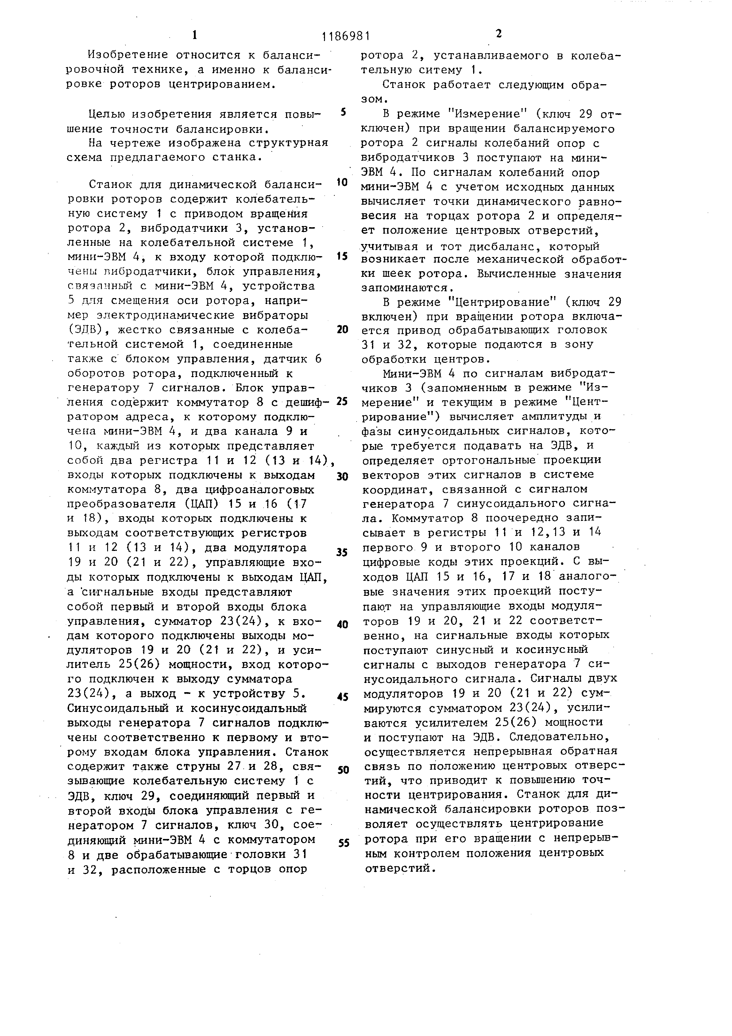 СТАНОК ДЛЯ даНАМИЧЕСКОЙ БАЛАНСИРОВКИ РОТОРОВ путем обработки