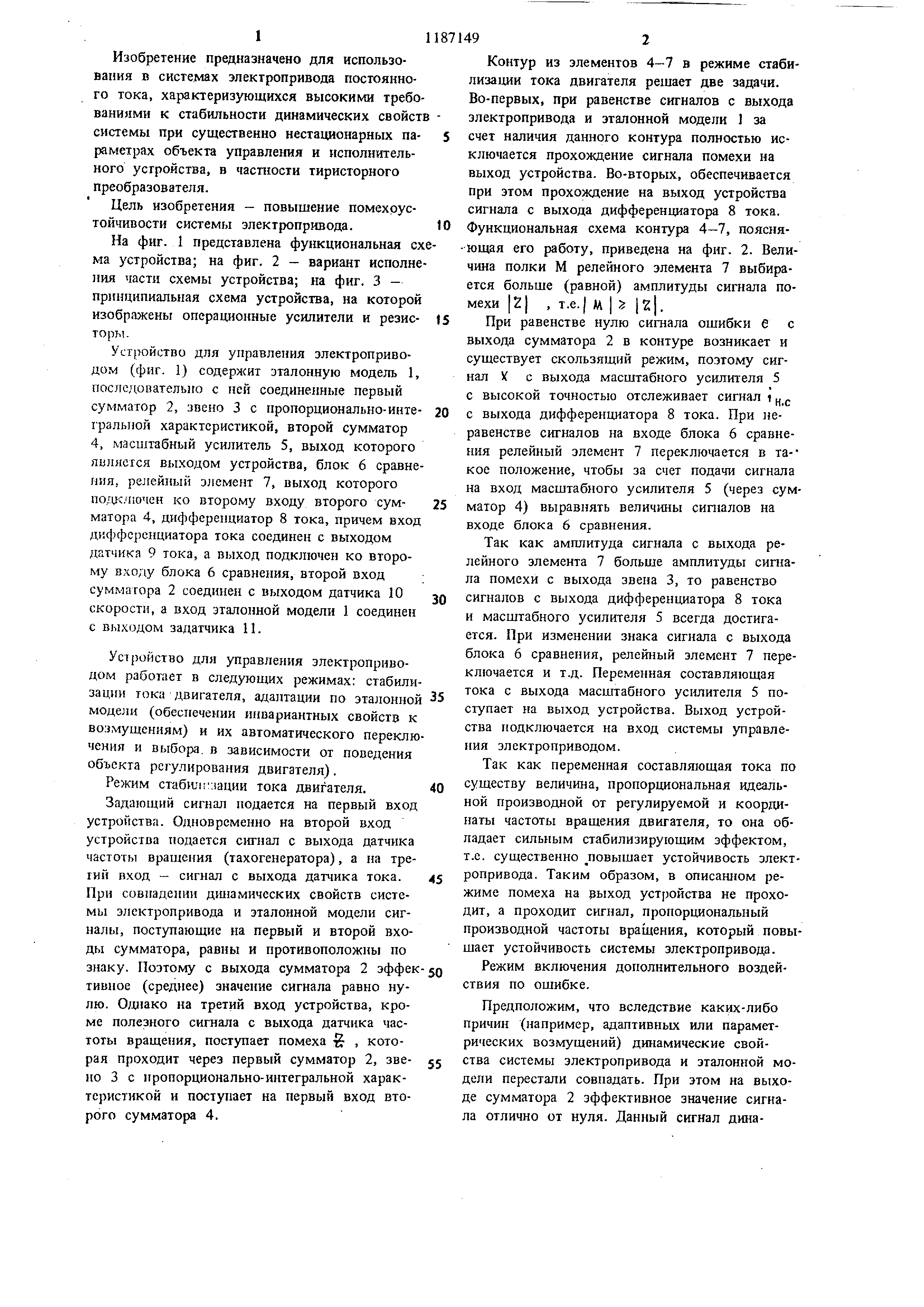 с выходом задатчика 11. Устройство для управления электроприводом работает в следующих режимах: стабили