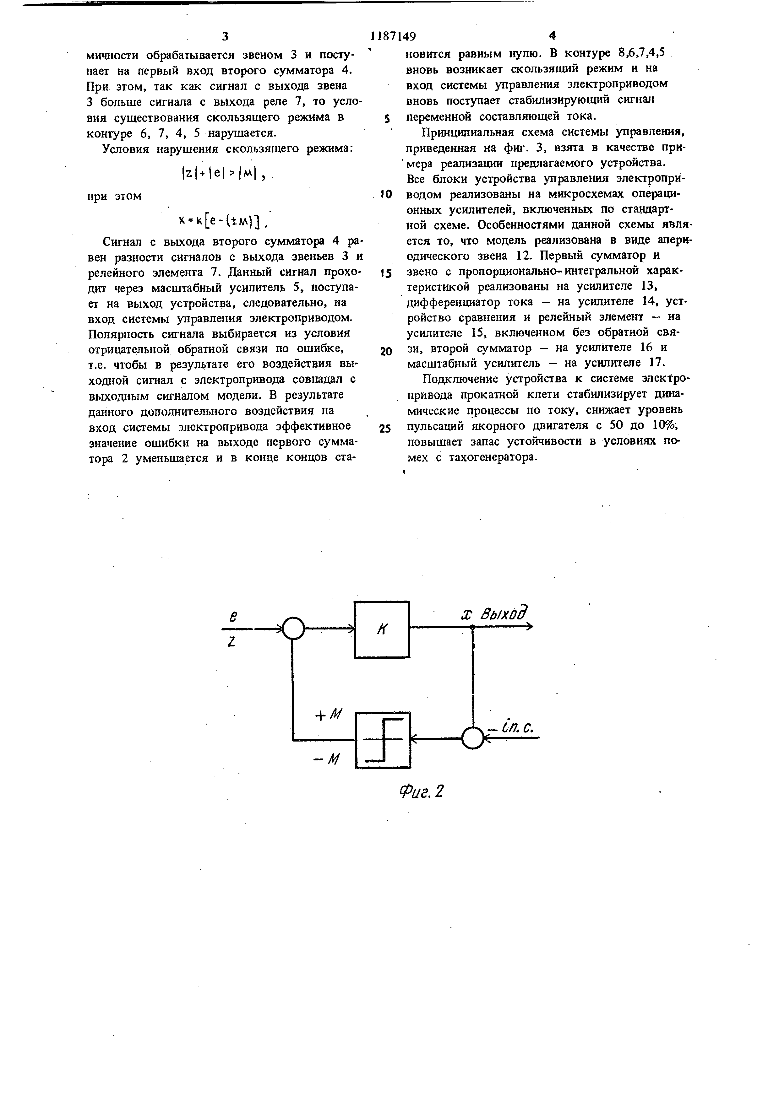 зи, второй сумматор - на усилителе 16 и масштабный усилитель - на усилителе 17. Подключение устройства к системе электропривода прокатной клети стабилизирует динамические