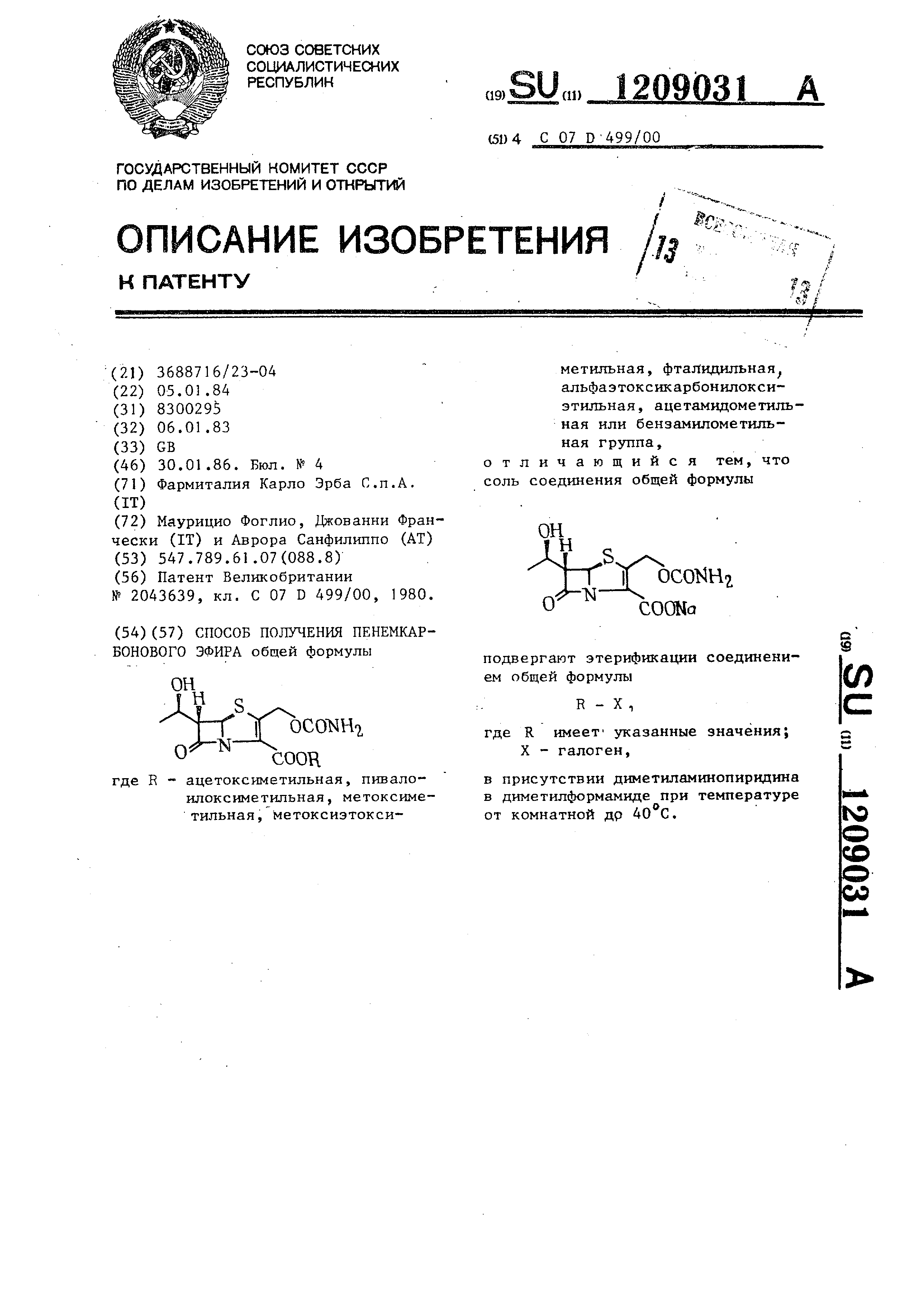 метиловый и пивалоилоксиэтиловый эфи- ры (5R,6S)-2-кapбaмoилoкcнмeтил-6-