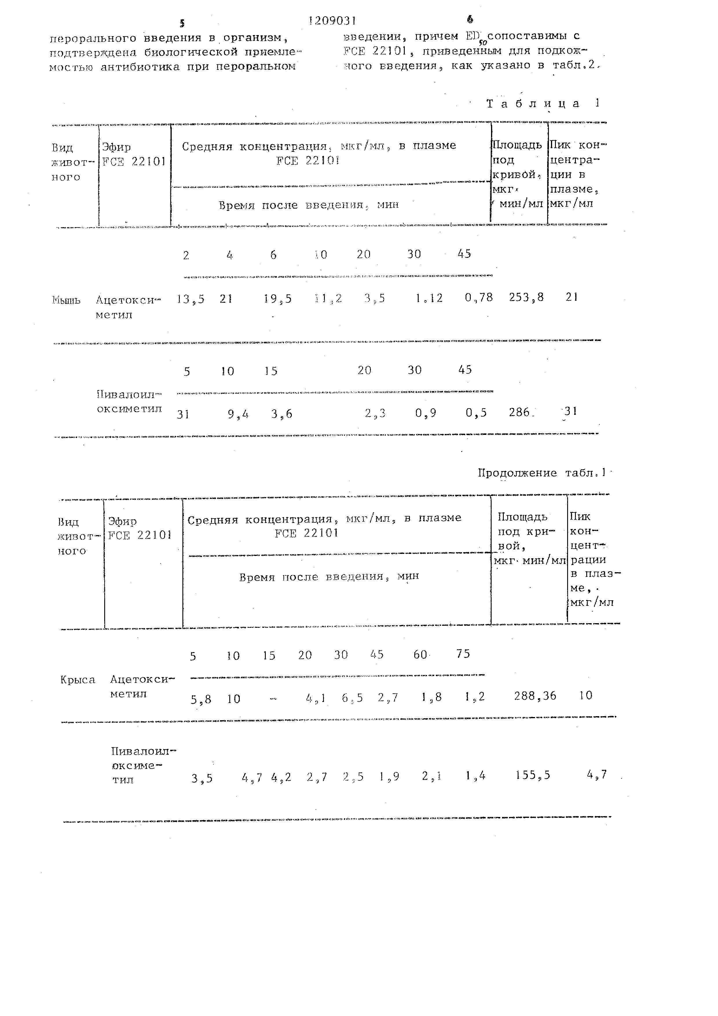 в табл.1, два эфира FCE 22101 перорально.давали в растворе мышам