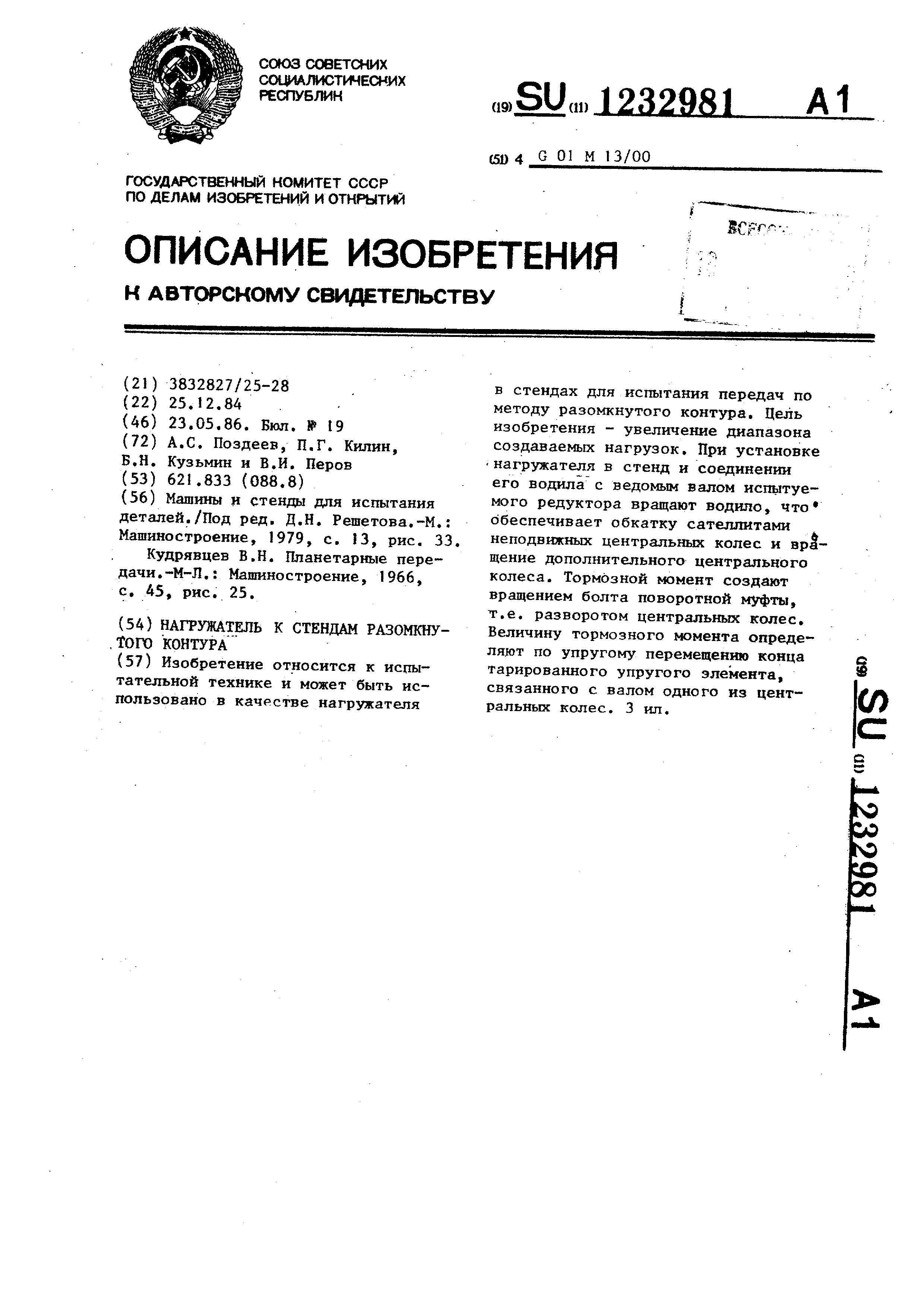 в качестве иагружателя в стендах для испытания передач по методу разомкнутого контура. Цель изобретения - увеличение диапазона создаваемых нагрузок. При установке нагружателя в стенд и соединении