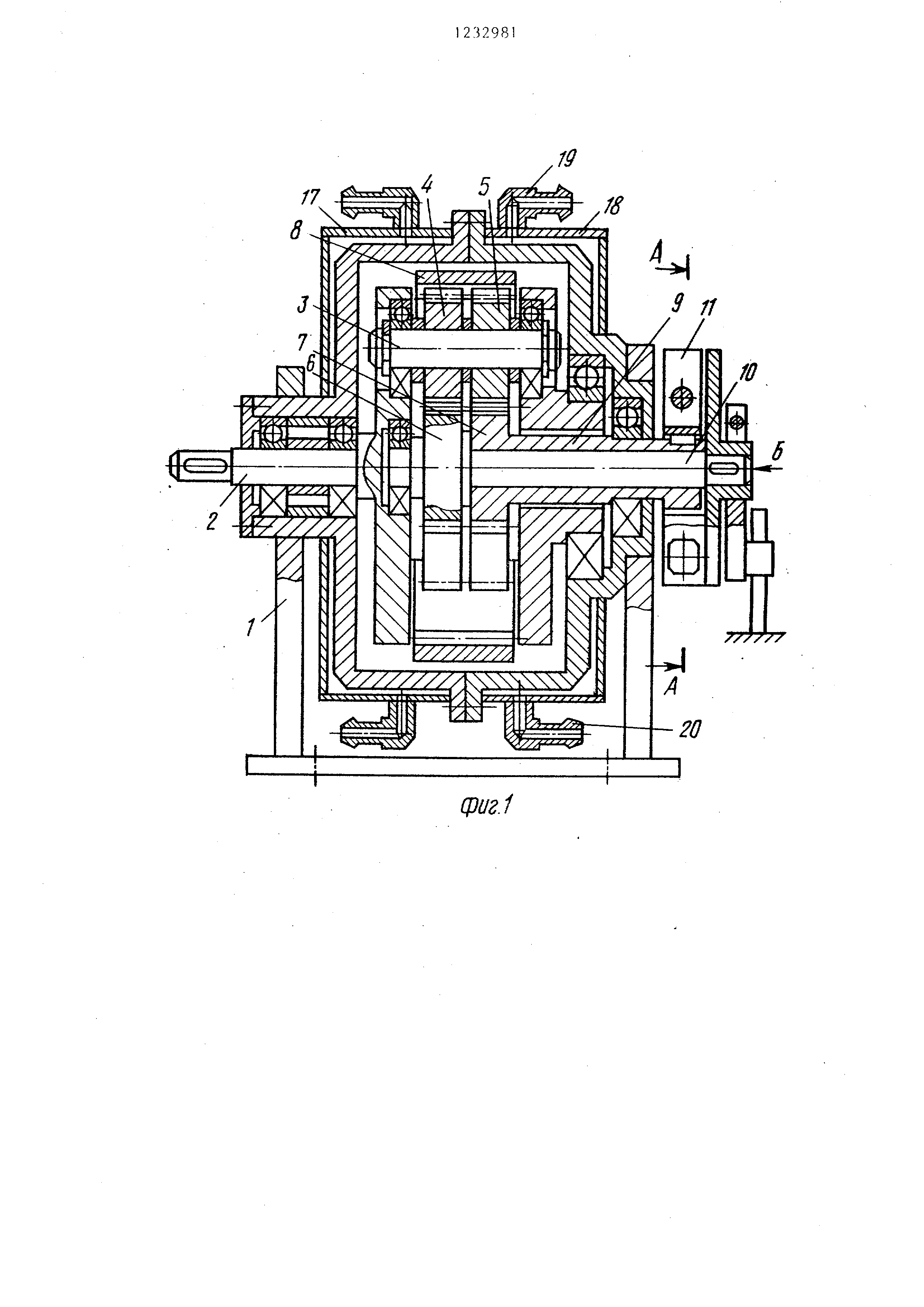 усилий в зацеплениях колес нагрутка- теля, а также за счет увеличения числа зацеплений. На ,фиг о 1 изображен нагружатель, общий вид, осевой разрез; на фиг.2 разрез А-А на фиг, 1; на фиг. 3