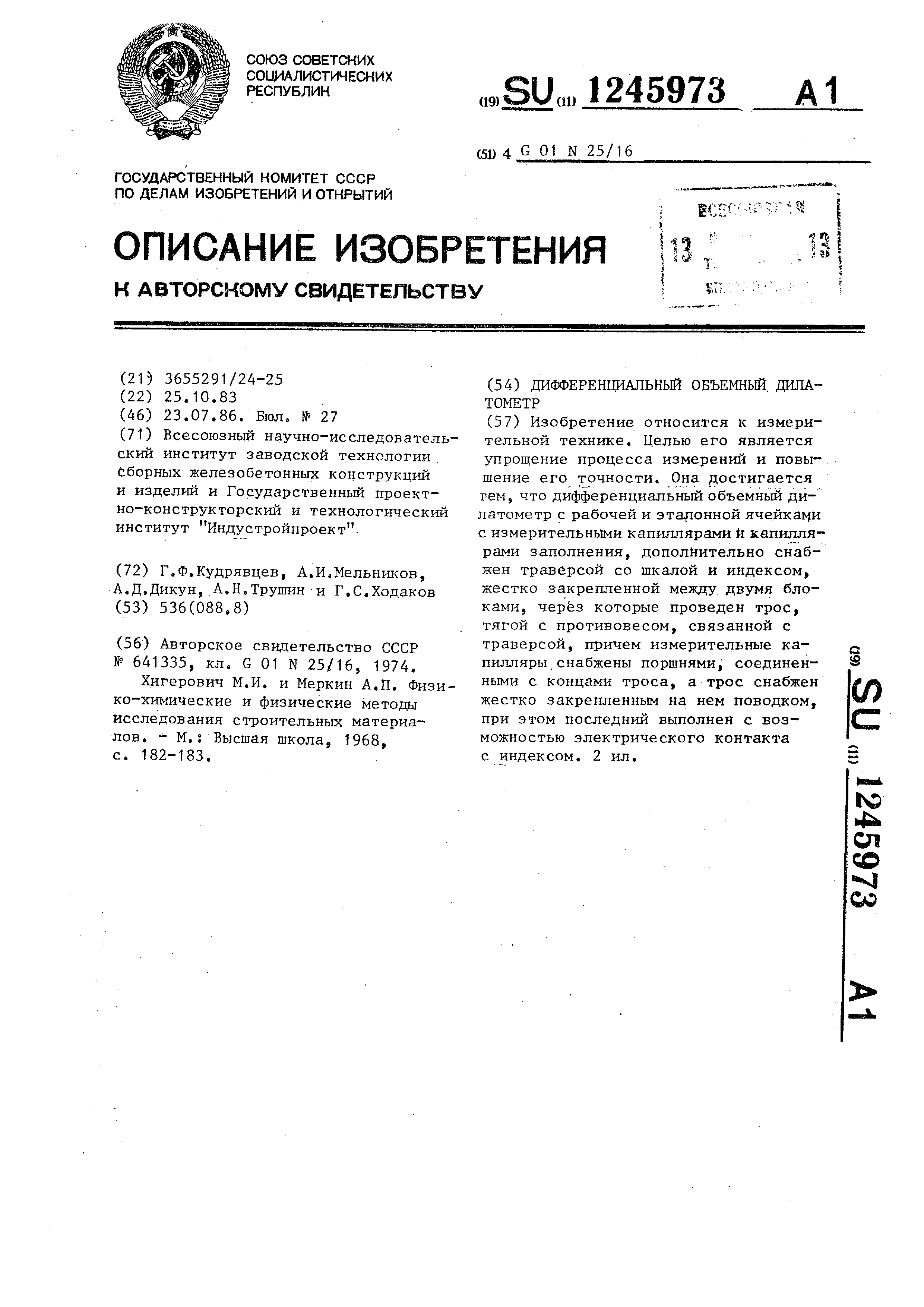 точность результатов анализа . Формула 3 3 обретения Дифференциальньш объемный дилатометр ,, содержащий рабочую и эталонную