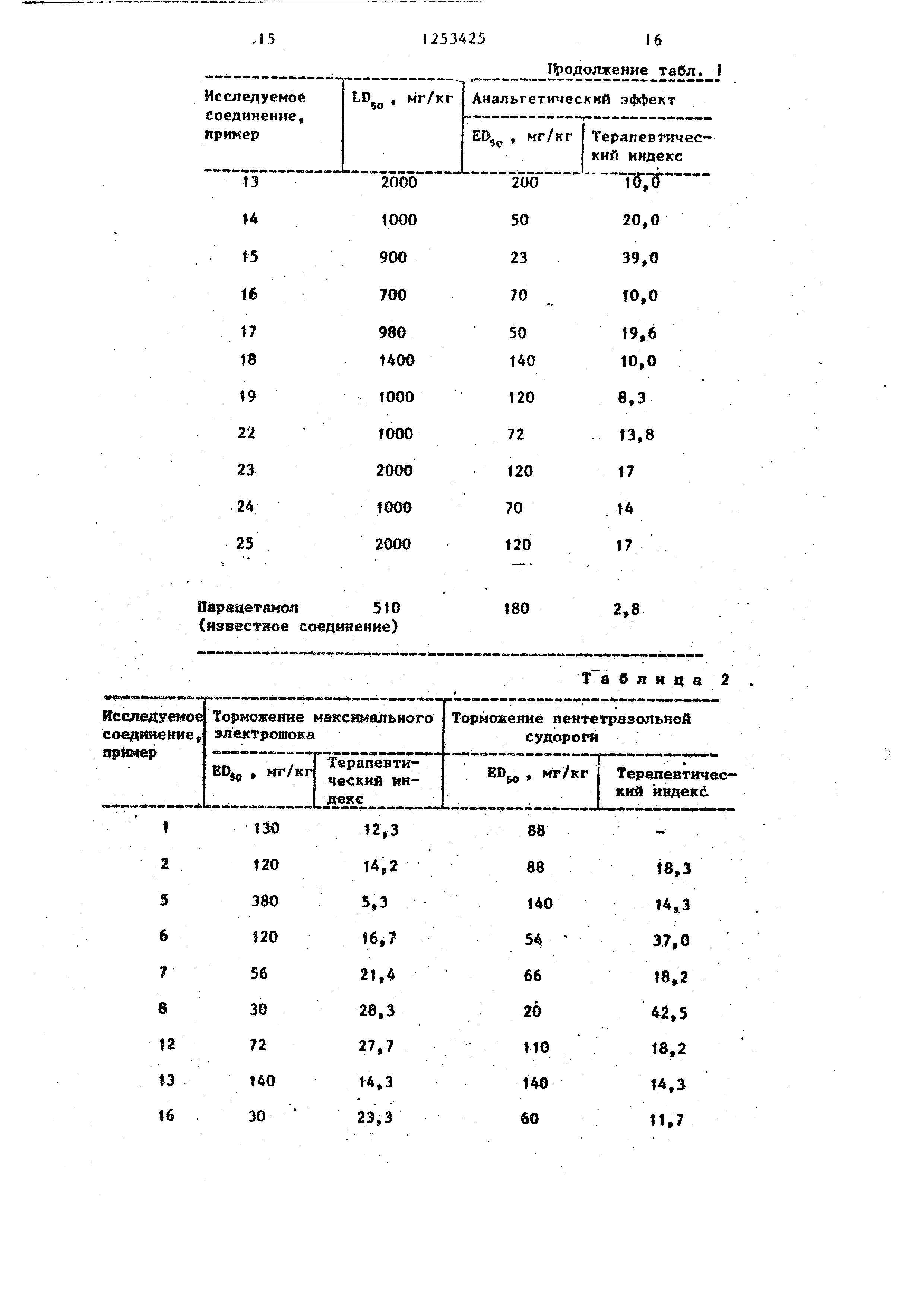 соединения, проявлякщие аналогичную активность.. Таблица 1 1Ц)одолжение табл. I Тавяица 2 100 78 25 80 270 to 2« 40 25 461 Редактор Е. Папп Составитель Ю. 2(ропрв Техред В. . Заказ 4635/60Тираж 379 . ВНИИПИ Государетвенворо кос штета СЖСР по делам изобретений И oTtcftiimift 113035, Москва Ж-35, Рвушсхая «а6,, д 4/5 . Производственно-полиграфическое предприятие, г. Ужгород ул. Проектная, 4 278 5000 417 4,4 Корректор И. Муска Подписное