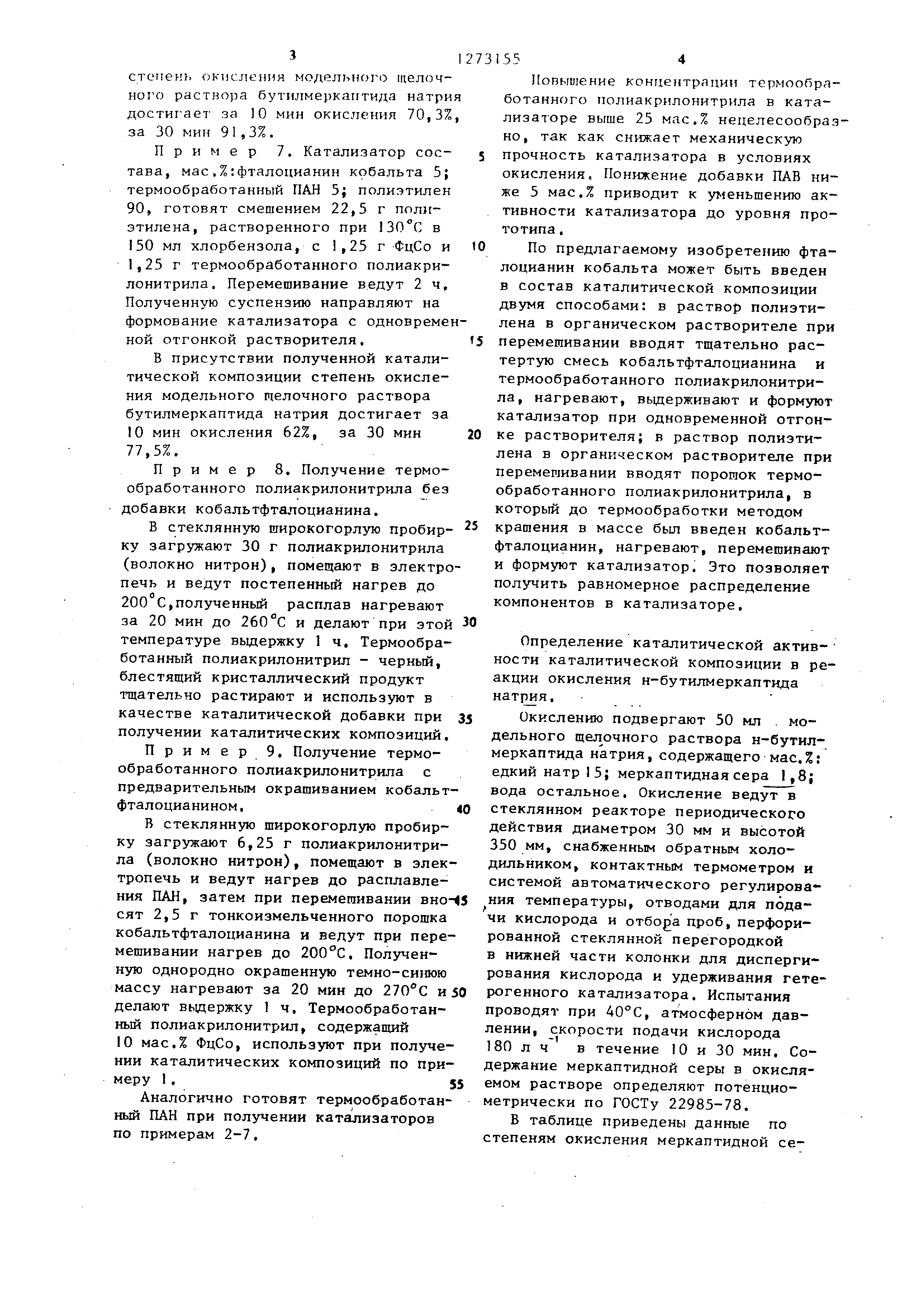 катализатора до уровня прототипа . По предлагаемому изобретению фталоцианин