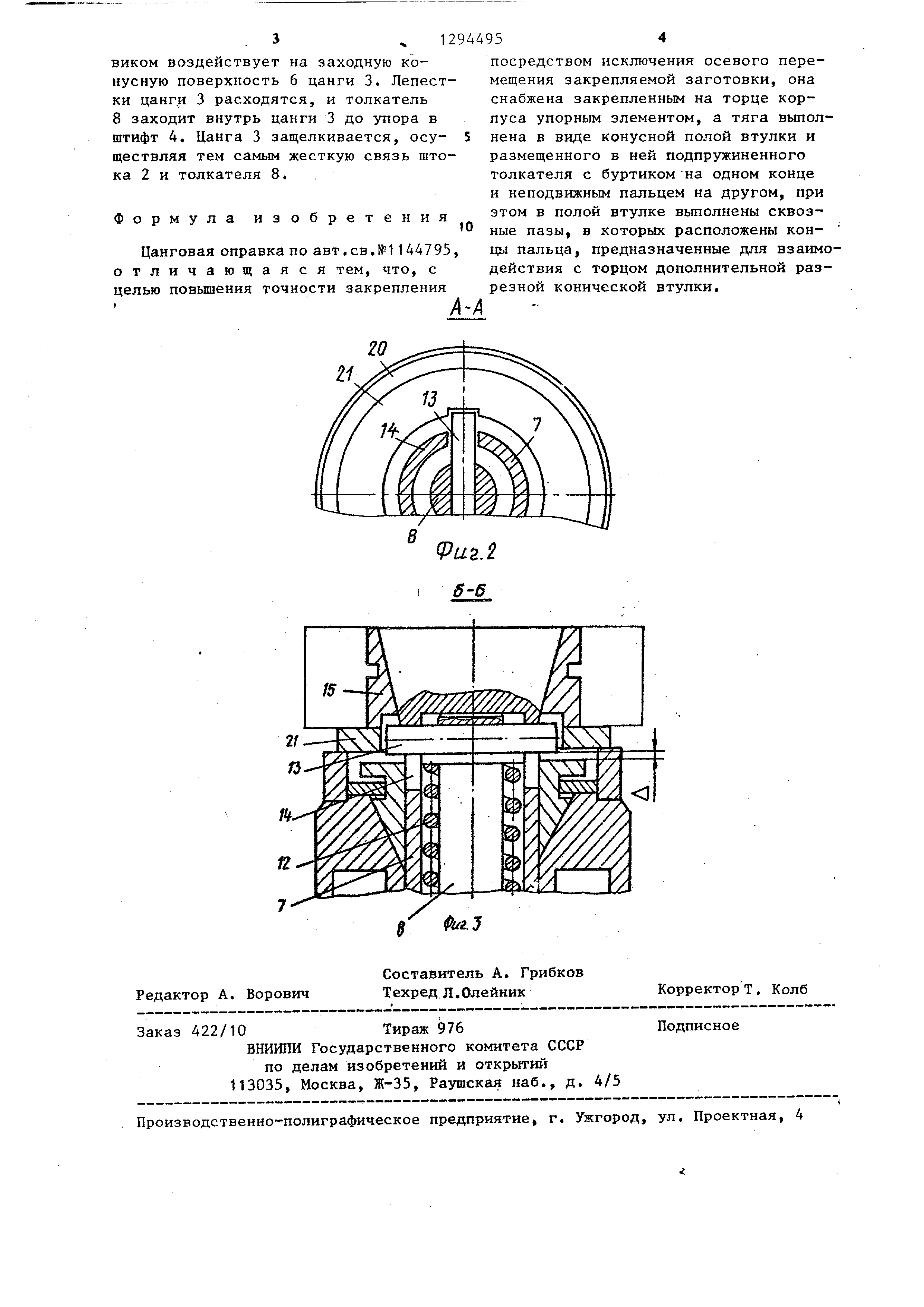 закрепления посредством исключения осевого перемещения закрепляемой заготовки. На фиг. 1 представлена цанговая оправка, общий вид на фиг. 2 - разрез А-А на фиг. 1,- на фиг. 3 - разрез