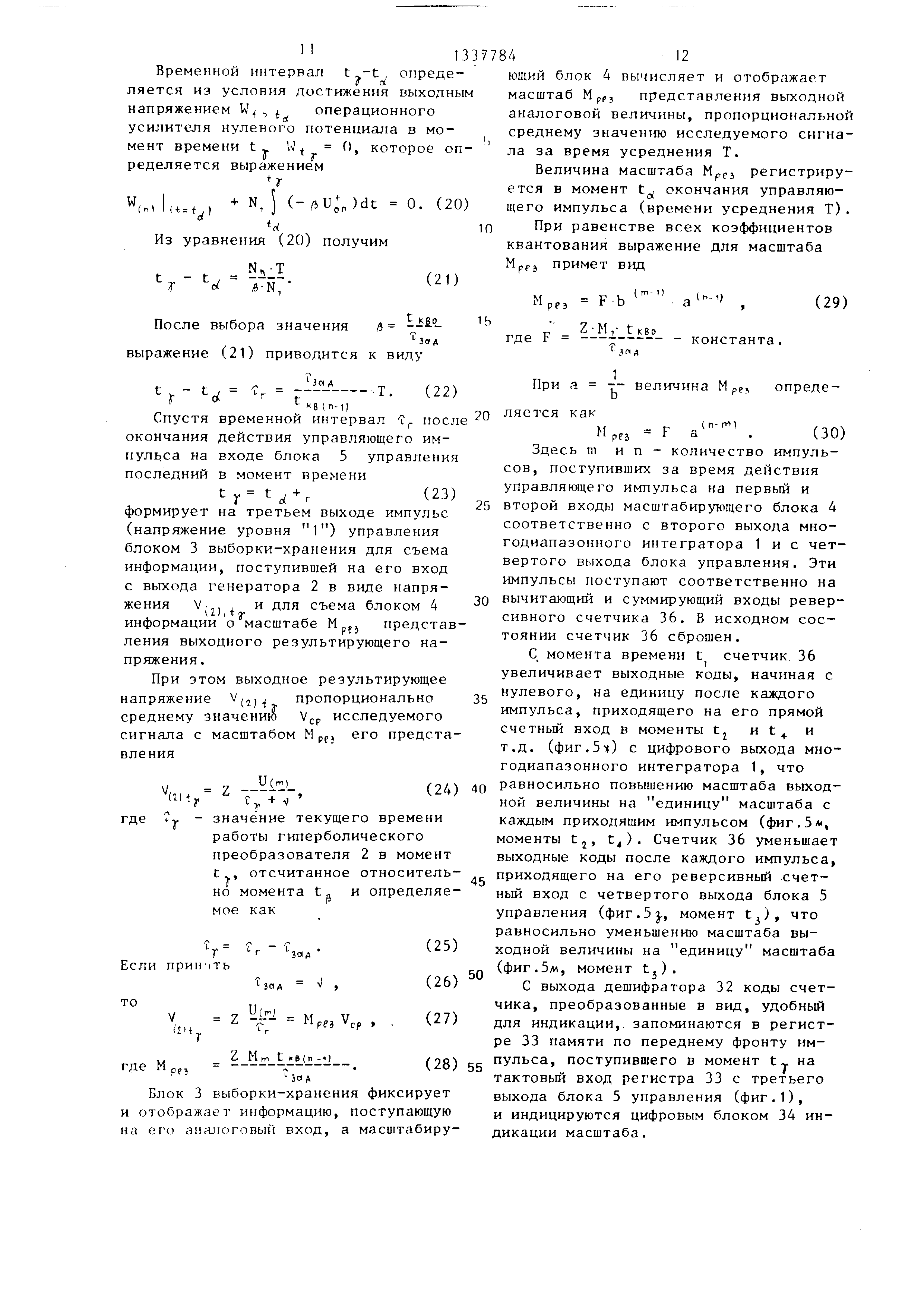Цель изобретения - повышение точности измерения за счет введения переменного масштаба интегрирования и расширения диапазона вариаций времени усреднения исследуемого сигнала.