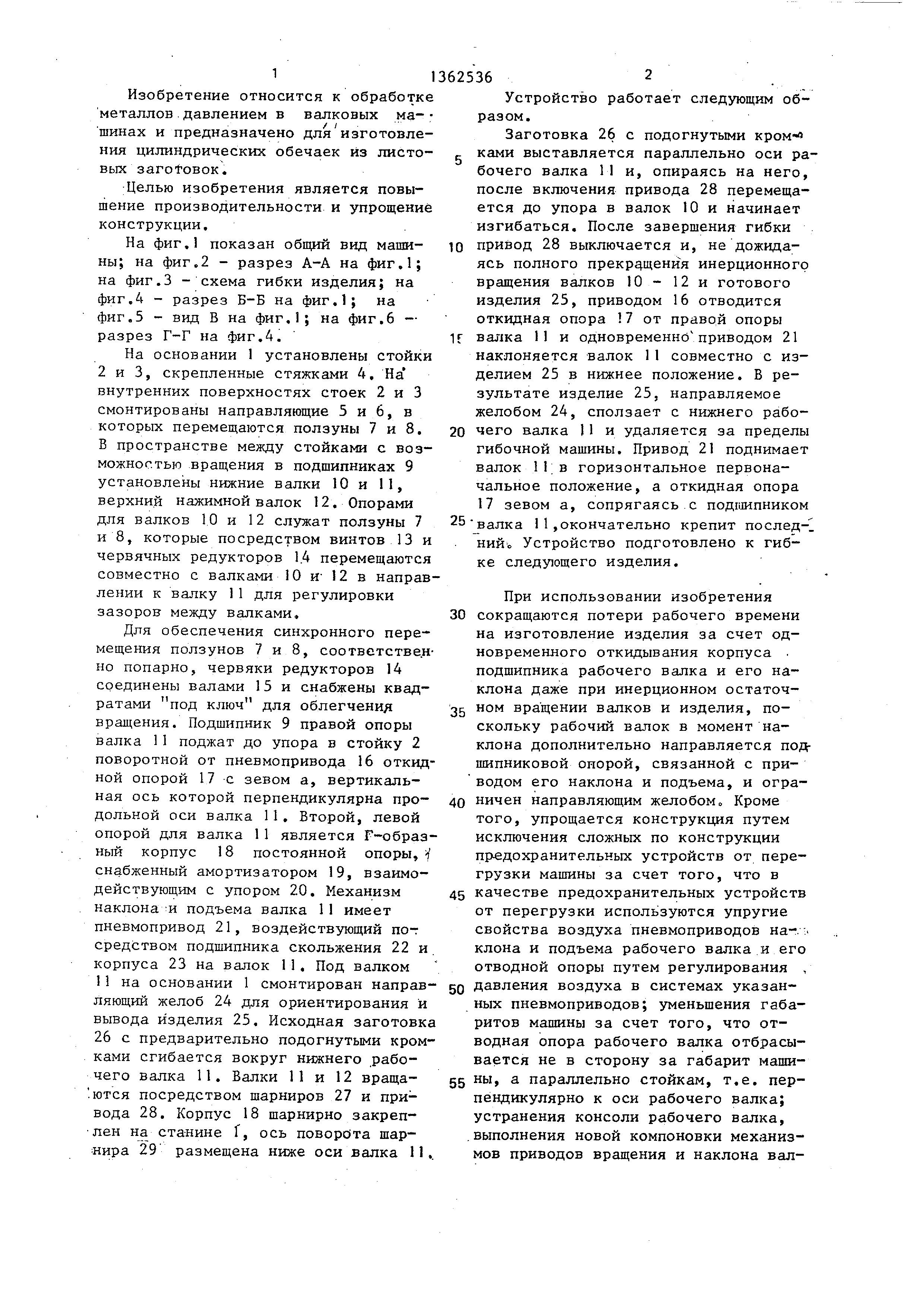 приводов вращения и наклона валУстройство работает следующим образом . Заготовка 26 с подогнутыми кром-в ками выставляется параллельно оси рабочего