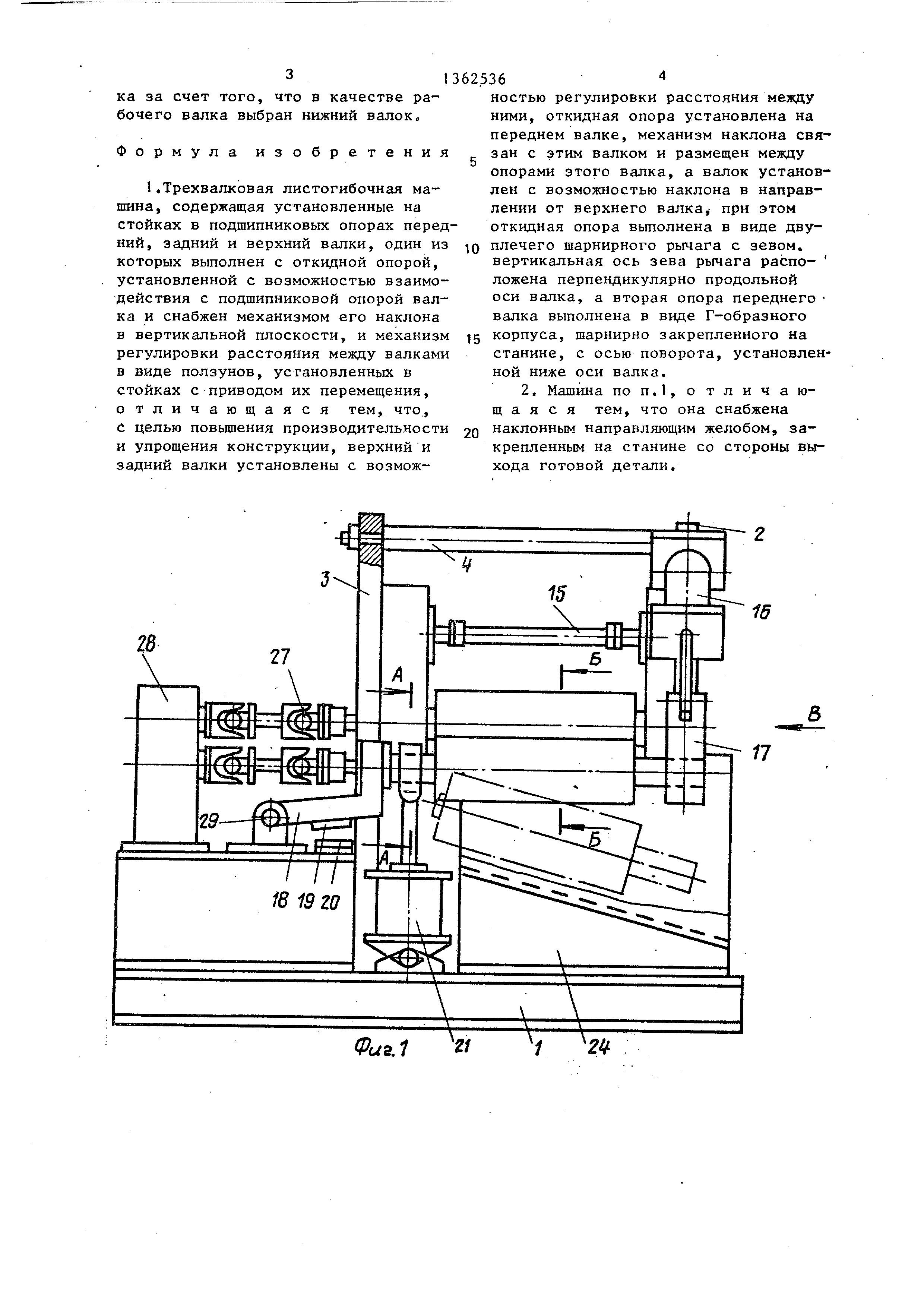 и упрощение конструкции. Трехвап- ковая листогибочная машина содержит нижние передний и задний валки, верхний