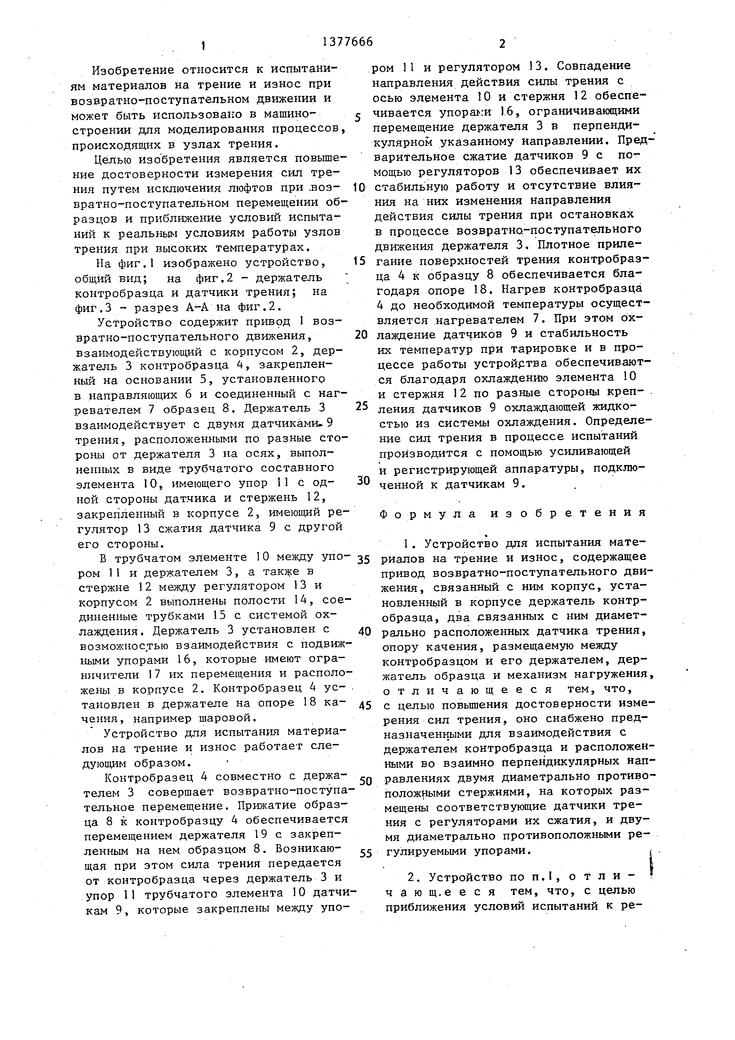 чйющ.ееся тем, что, с цепью приближения условий испытаний к реальным условиям работы узлов трения при высоких температурах, оно снабжено нагревателем контробразца и системой охлаждения датчиков трения.
