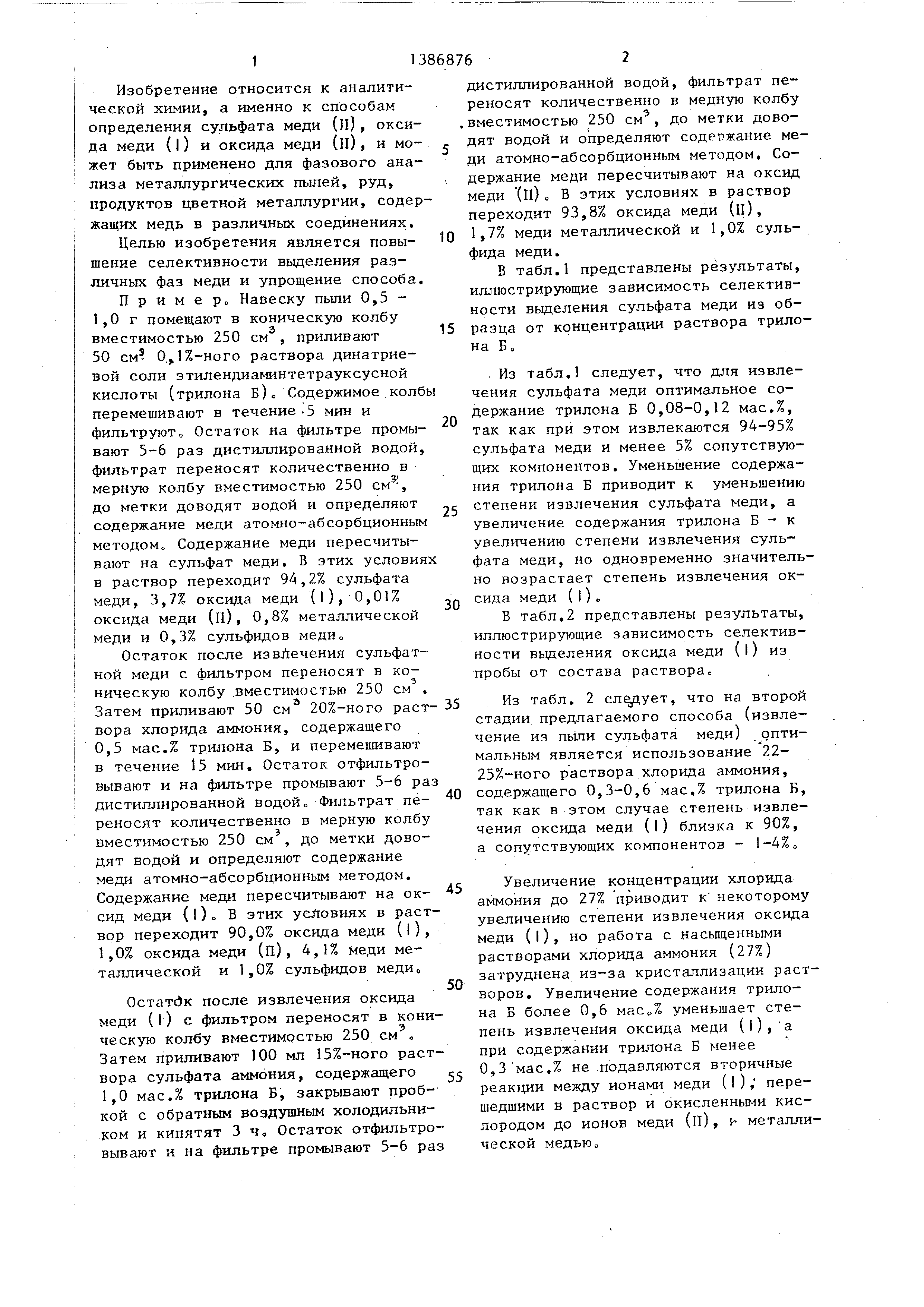 оксида меди (п) из смеси соединений меди выходит за пределы случайной. Изобретение позволяет более селективно извлекать из проб сульфат меди (и), оксид меди (I) и оксид