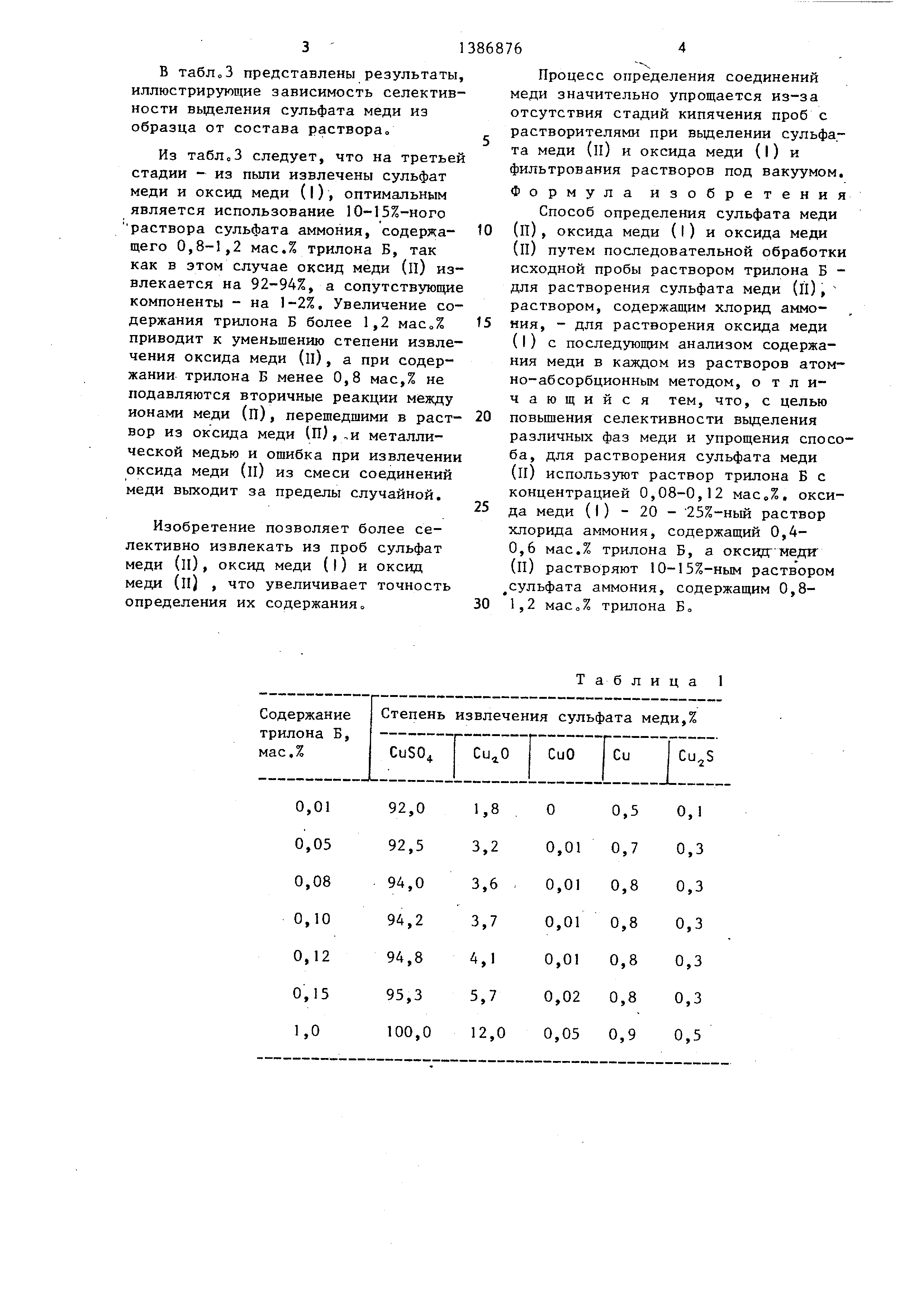 сульфата меди оптимальное содержание трилона Б 0,08-0,12 мас.%, так как при этом извлекаются 94-95%