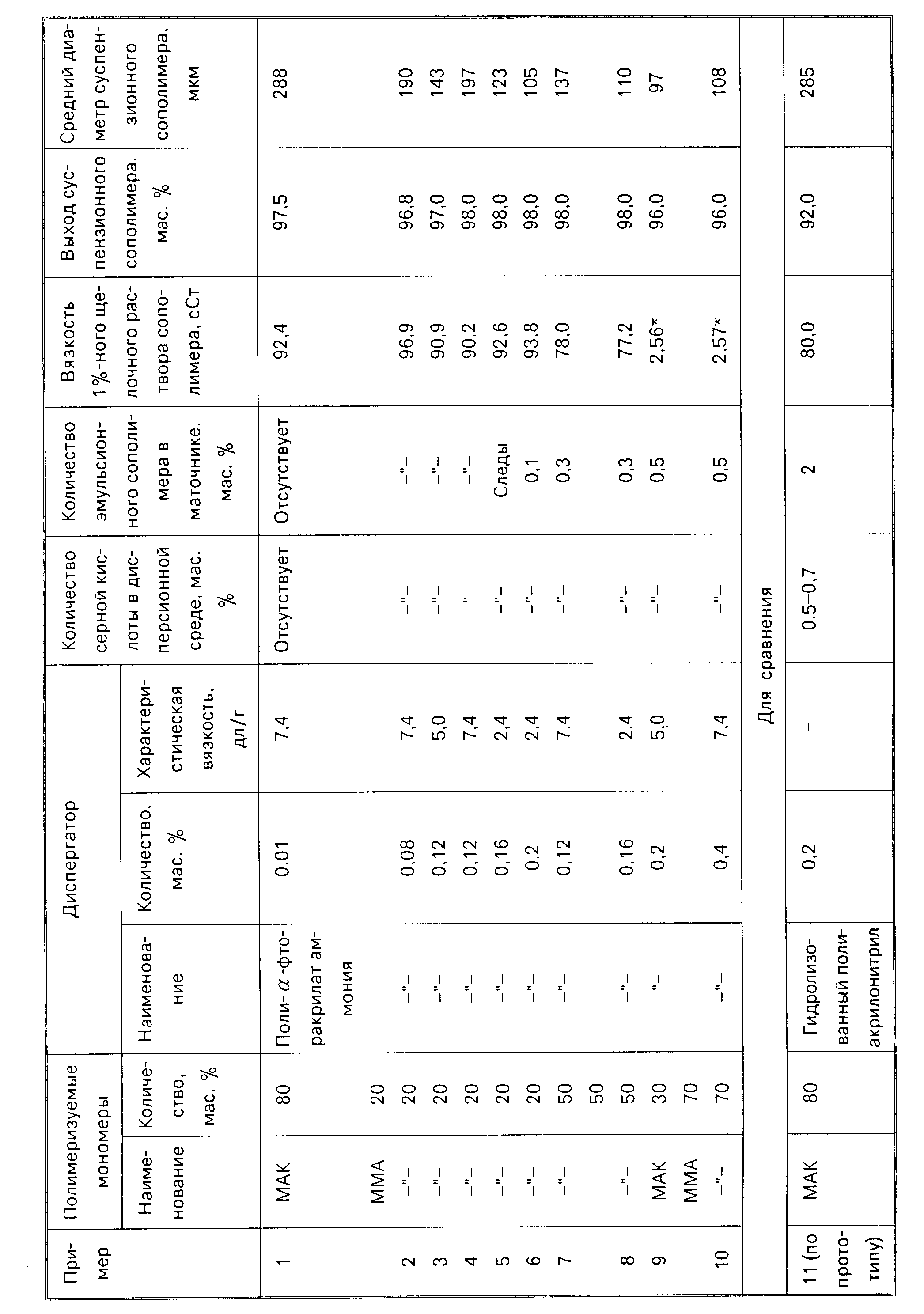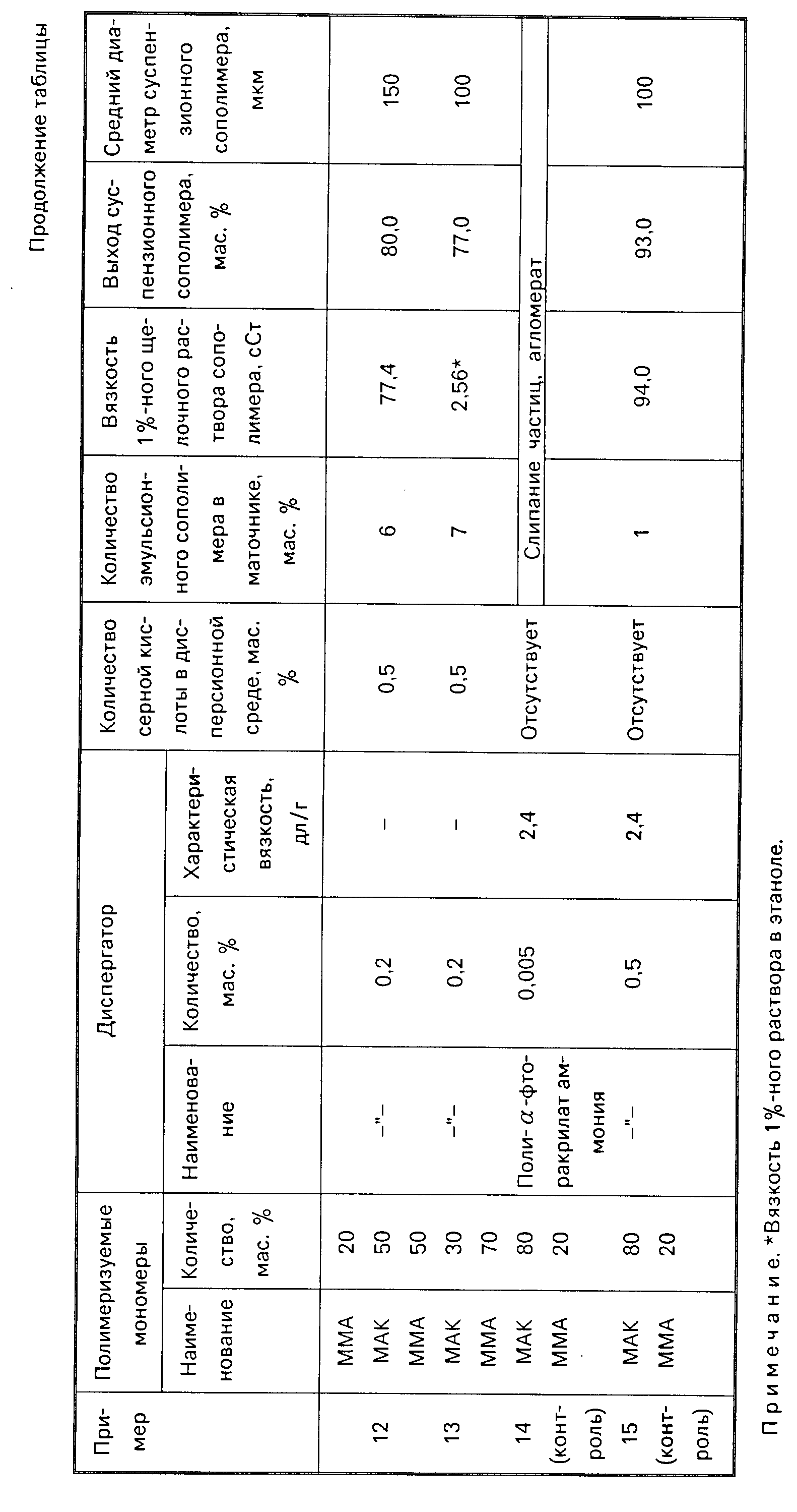 аммония с характеристической вязкостью 7,4 дл/г в качестве диспергатора. Затем при вращающейся мешалке в реактор сливают мономерную смесь, состоящую из 80 мас. МАК, 20 мас. ММА и 0,1 мас. инициатора