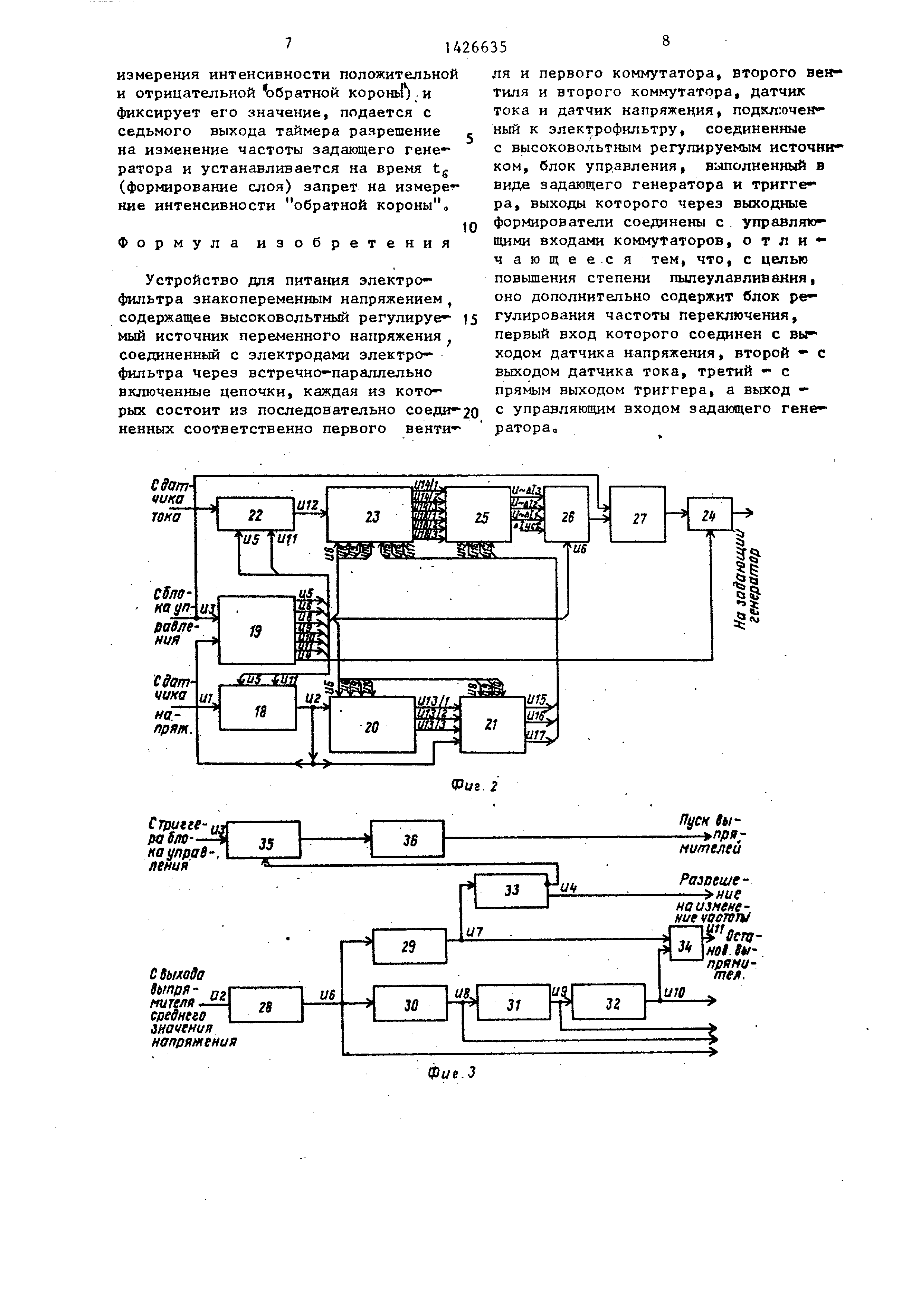 ный сигнал,снимаемый с датчика 8 тока через-электрофильтр. С выходов блоков 18 и 22 снимаются сигналы положительной полярности и, и, (фиг,5 и 6),