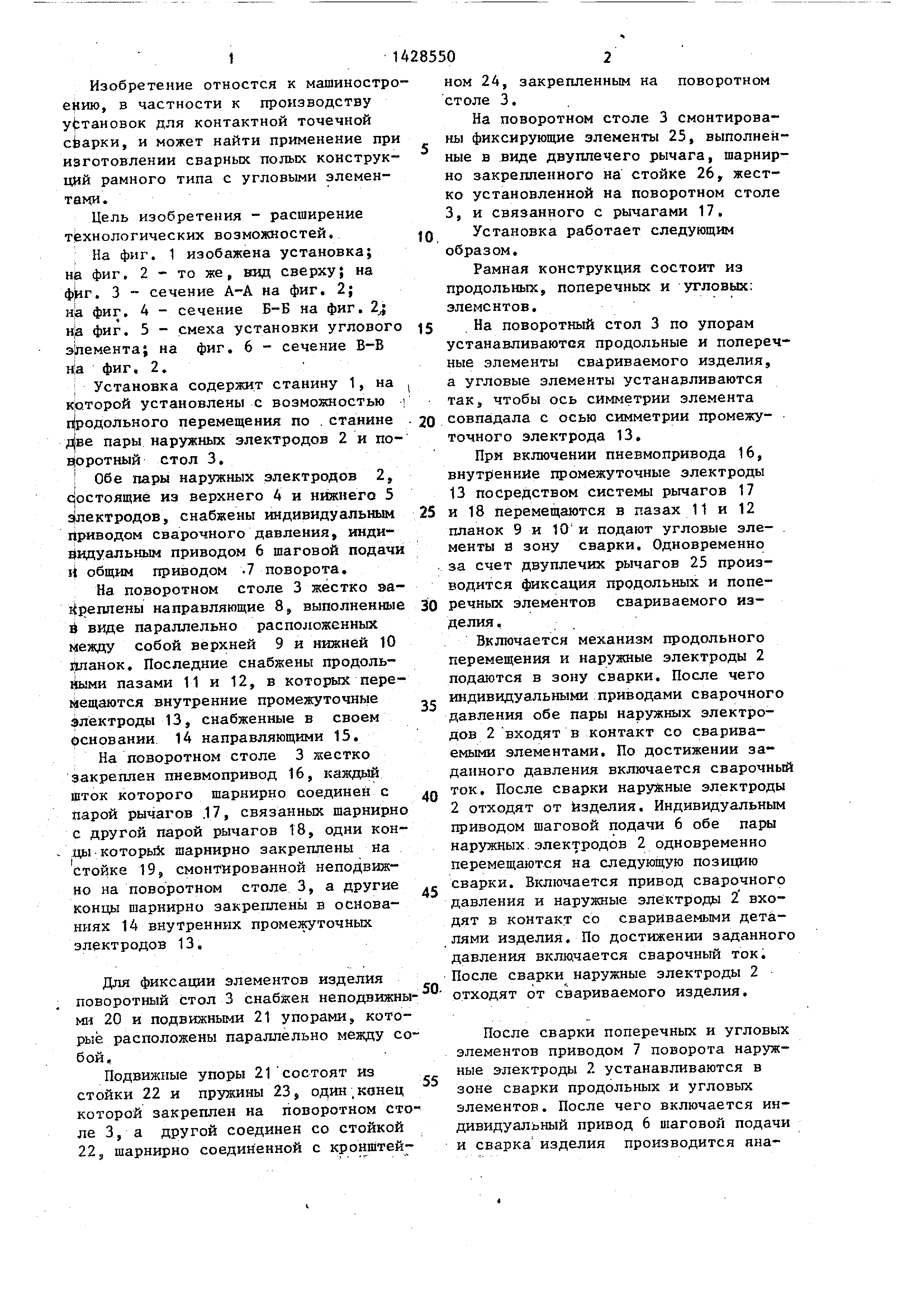пневмопривода 16 в зону сварки подаются угловые элементы совместно с внутренними промежуточными электродами 13. При этом происходит фиксация