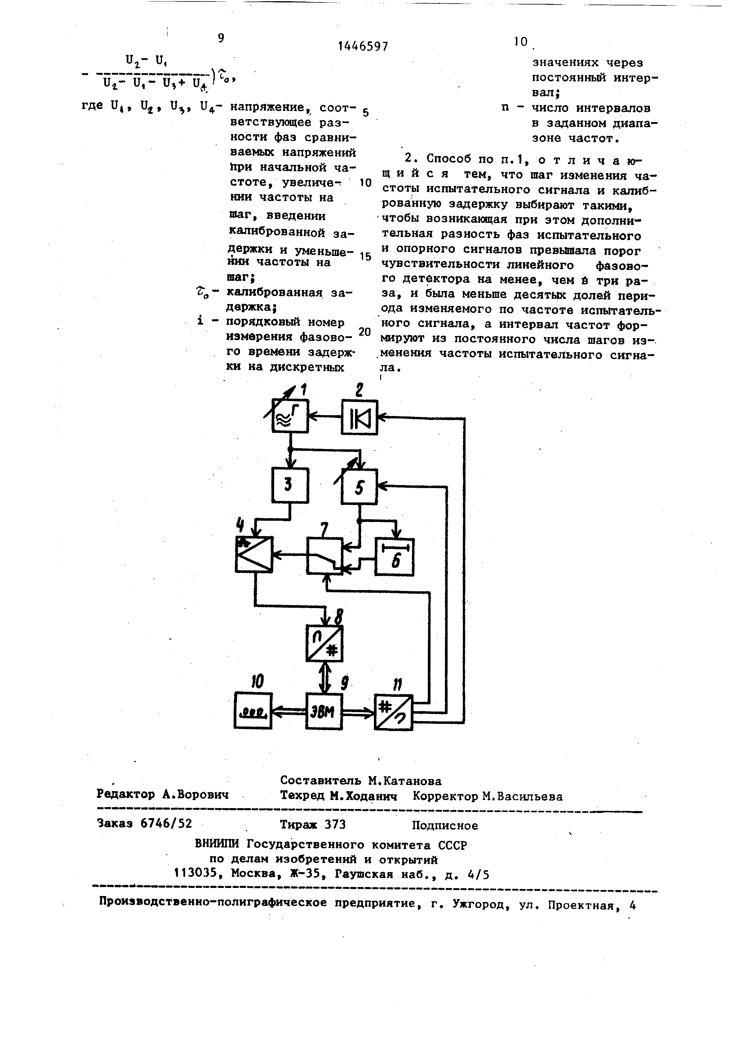 задержки, после измерения разност фаз на минимальной частоте испыта тельного сигнала увеличивают част
