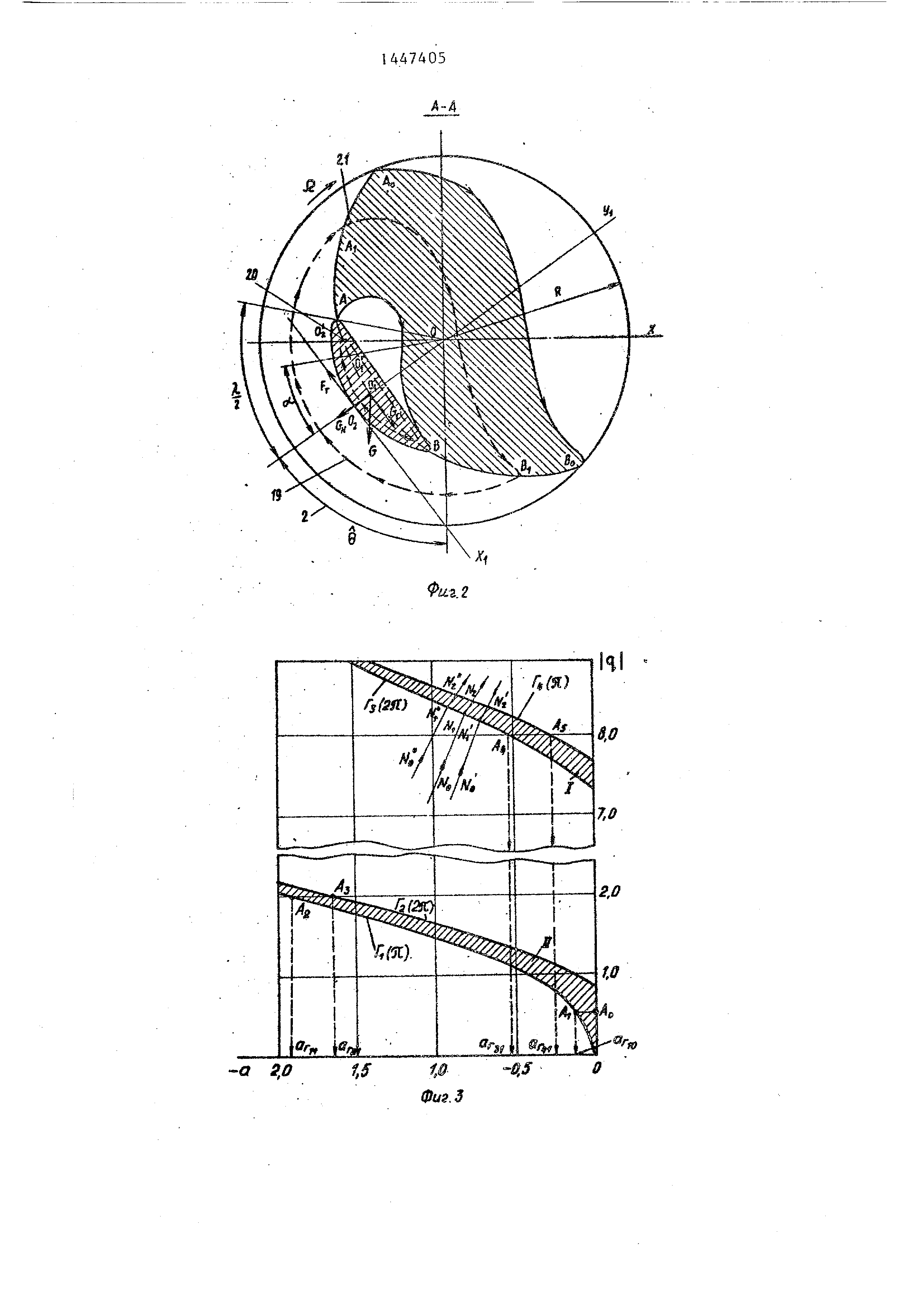 центральное малоподвижное ядро 20, летящий материал 21. На фиг.З незаштрихованная I область - область неустойчивых параметрических колебаний, а II область -