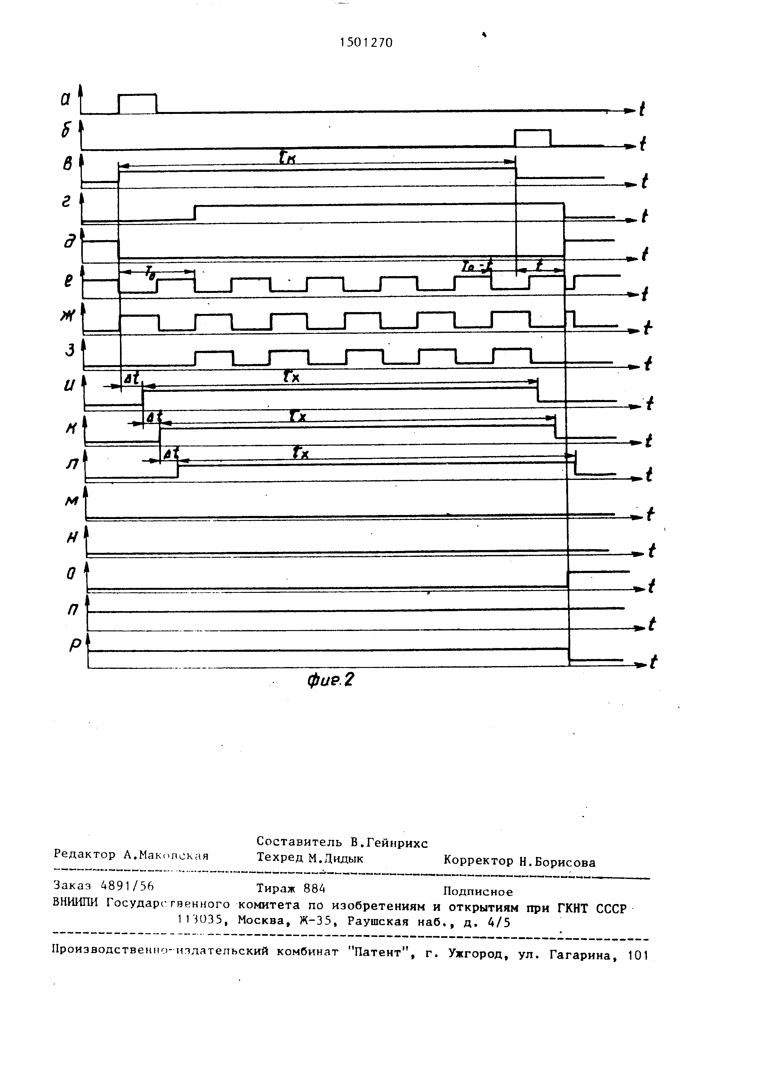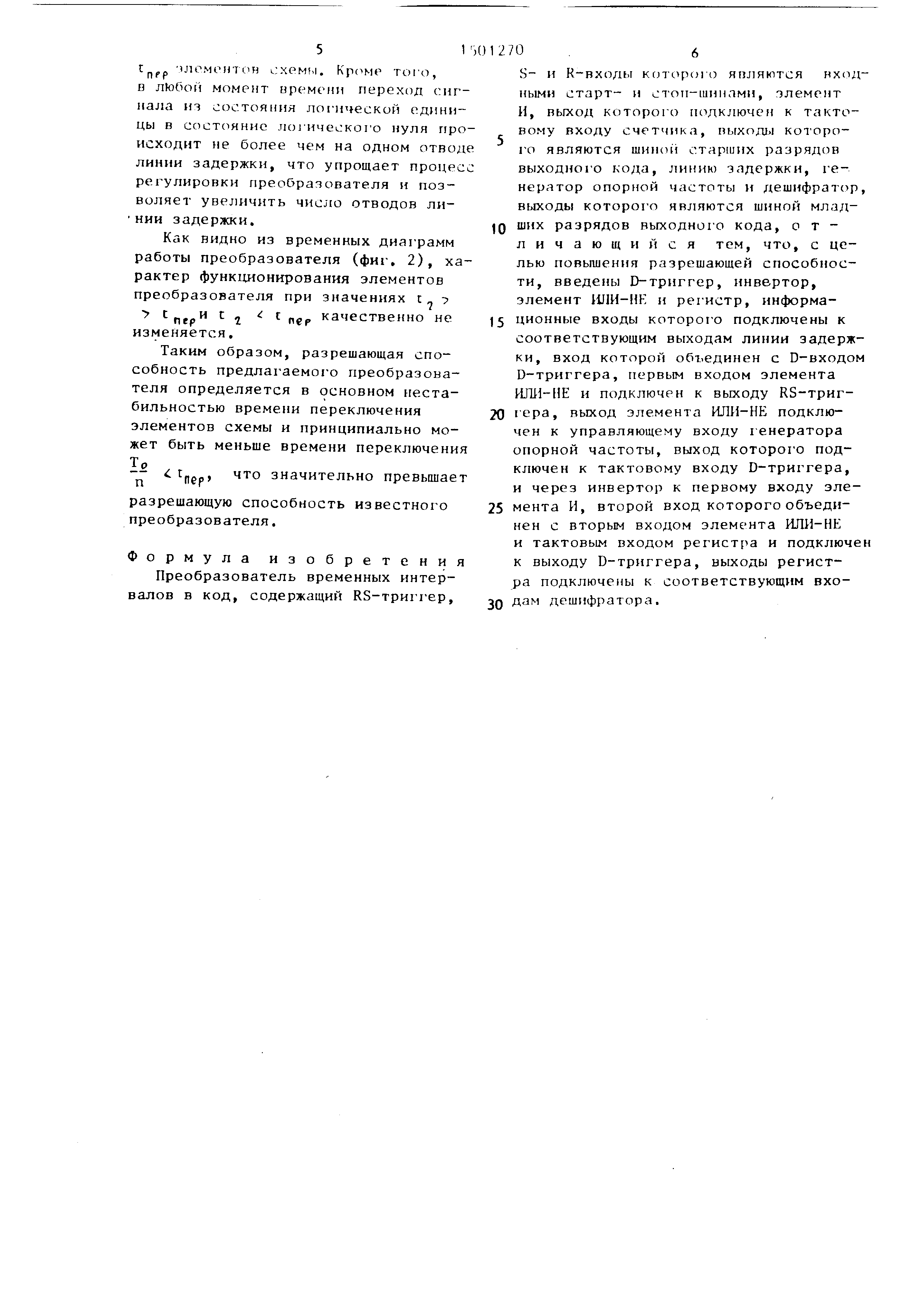 Как видно из временных диаграмм работы преобразователя (фиг, 2), характер функционирования элементов преобразователя при значениях t, с j и t 2 : с ngp качественно не изменяется.