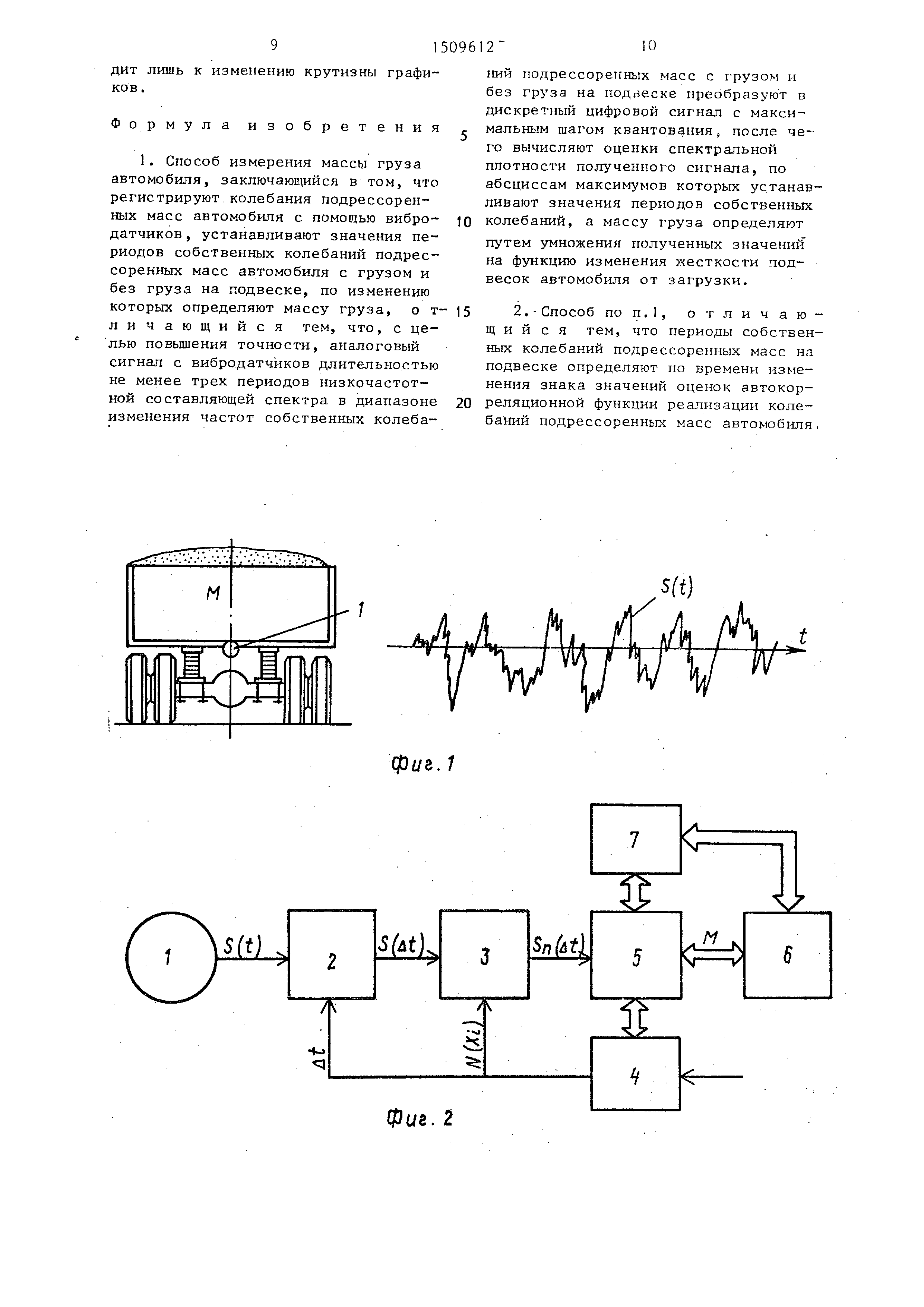 реализаций колебаний подрессоренных масс, а оценку массы груза выполняют по периодам, значения которых корректируют в соответствии с изменением жесткости подвески автомобиля в процессе его загрузки. 1 с. з.п.ф-лы. 5 ил.