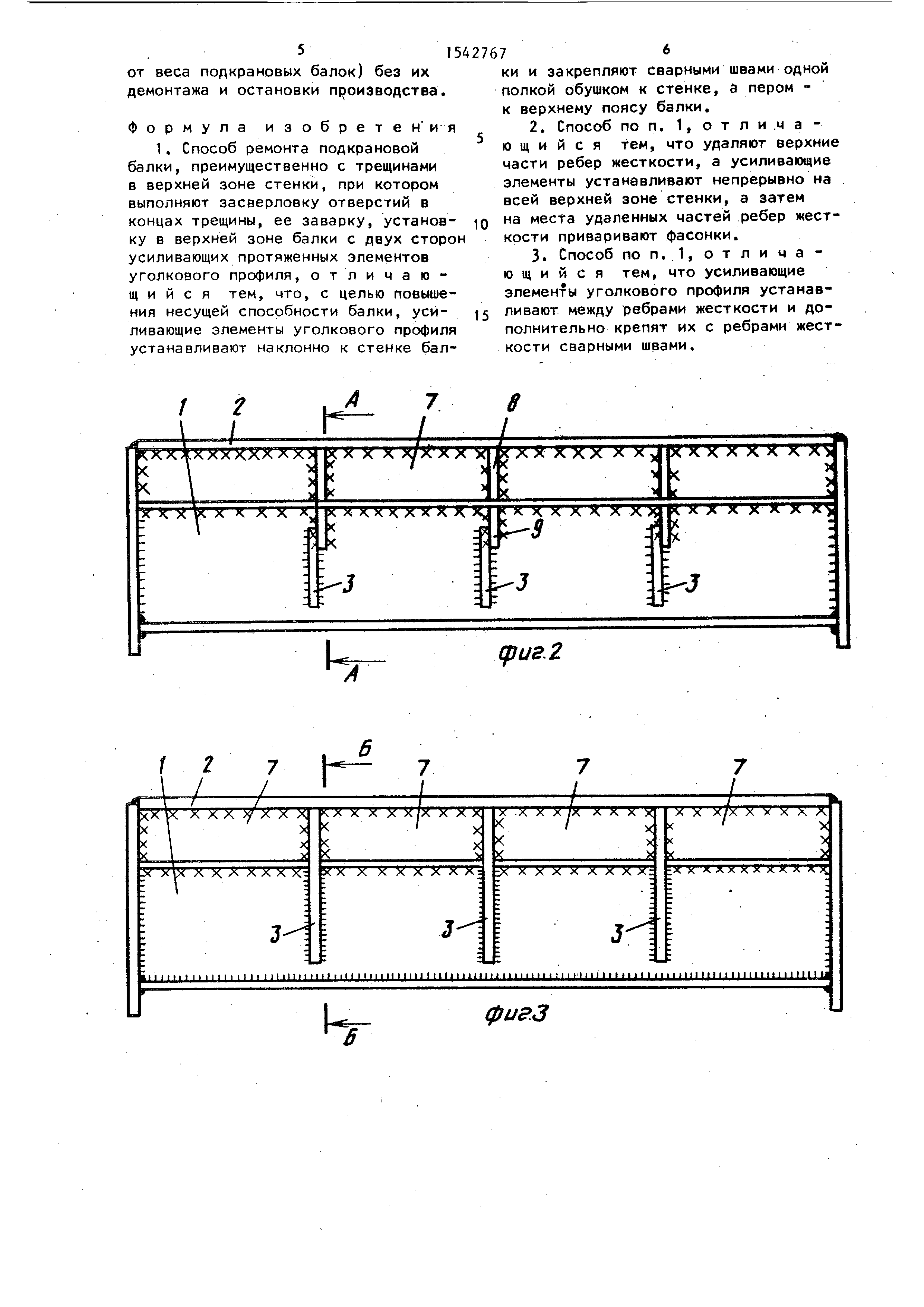 швами непосредственно с ребрами жесткости 3 или через фасонки 9. При этом повышается выносливость верхней зоны стенки балки, подвергнутой восстановлению. 2 з.п. ф-лы, 5 ил.