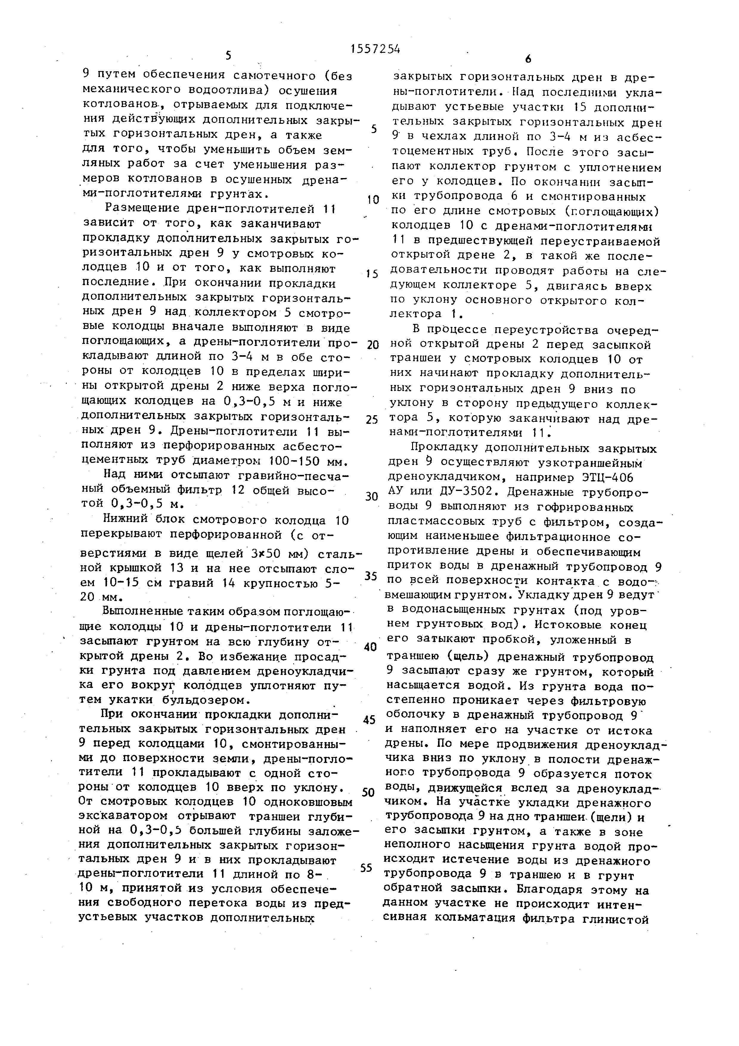5 тора 5, которую заканчивают над дренами-поглотителями 11 . Прокладку дополнительных закрытых дрен 9 осуществляют узкотраншейным