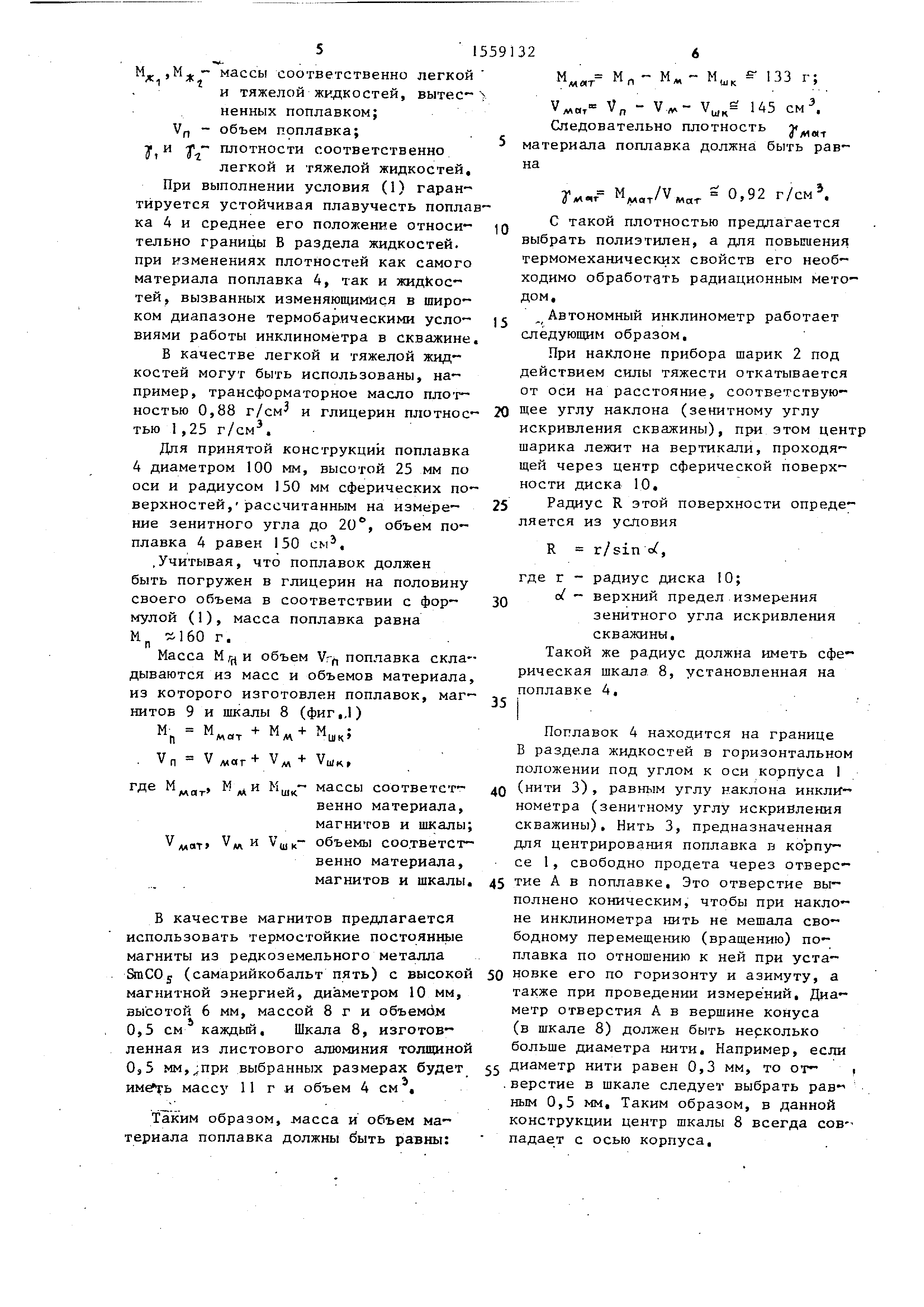 10 ный или близкий половине объема поплавка. 3. Инклинометр по п,1, отличающийся