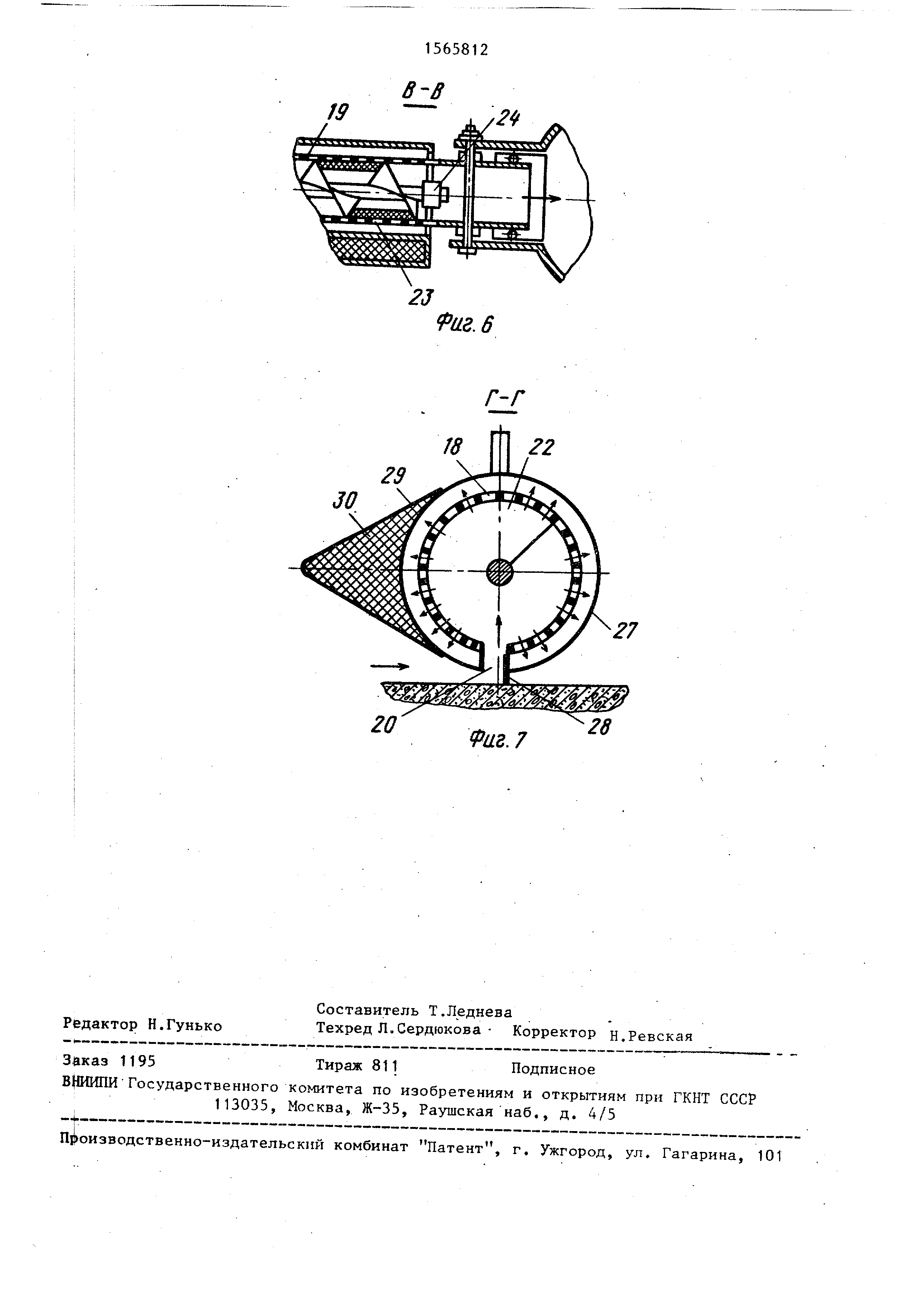 19трубы 18. Шнек 22 установлен в под йшпниковых опорах 24 и с внешней стороны соединен с катком 25 через шар- Кирную муфту 26.