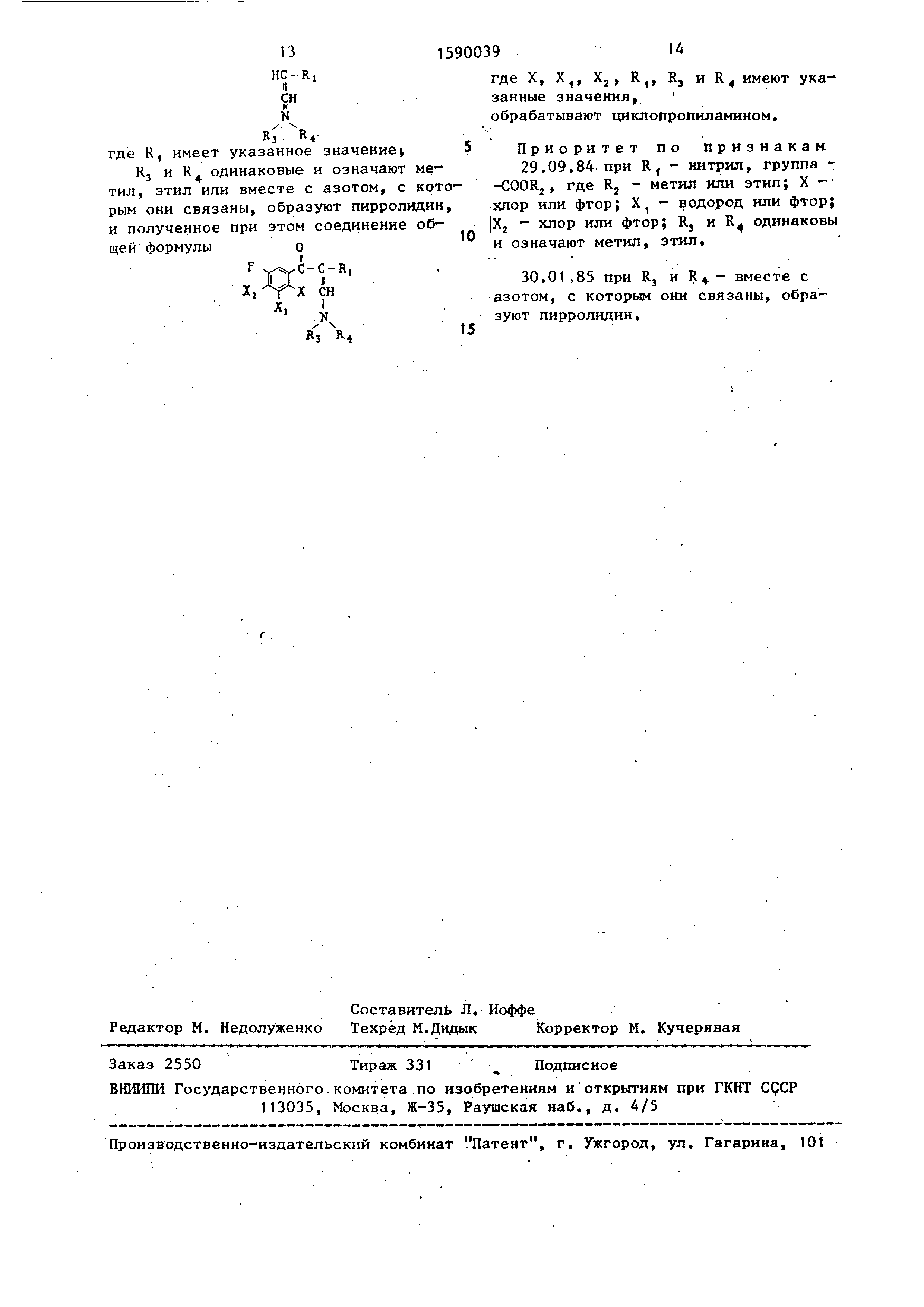 RJ и R одинаковые и означают ме- 29.09.84 при R, - нитрил, группа тил , вместе с азотом, с кото--COORj , где Rj - метил или этил; X рым они связаны, образуют пирролидин,хлор или фтор; X, - водород или фтор;