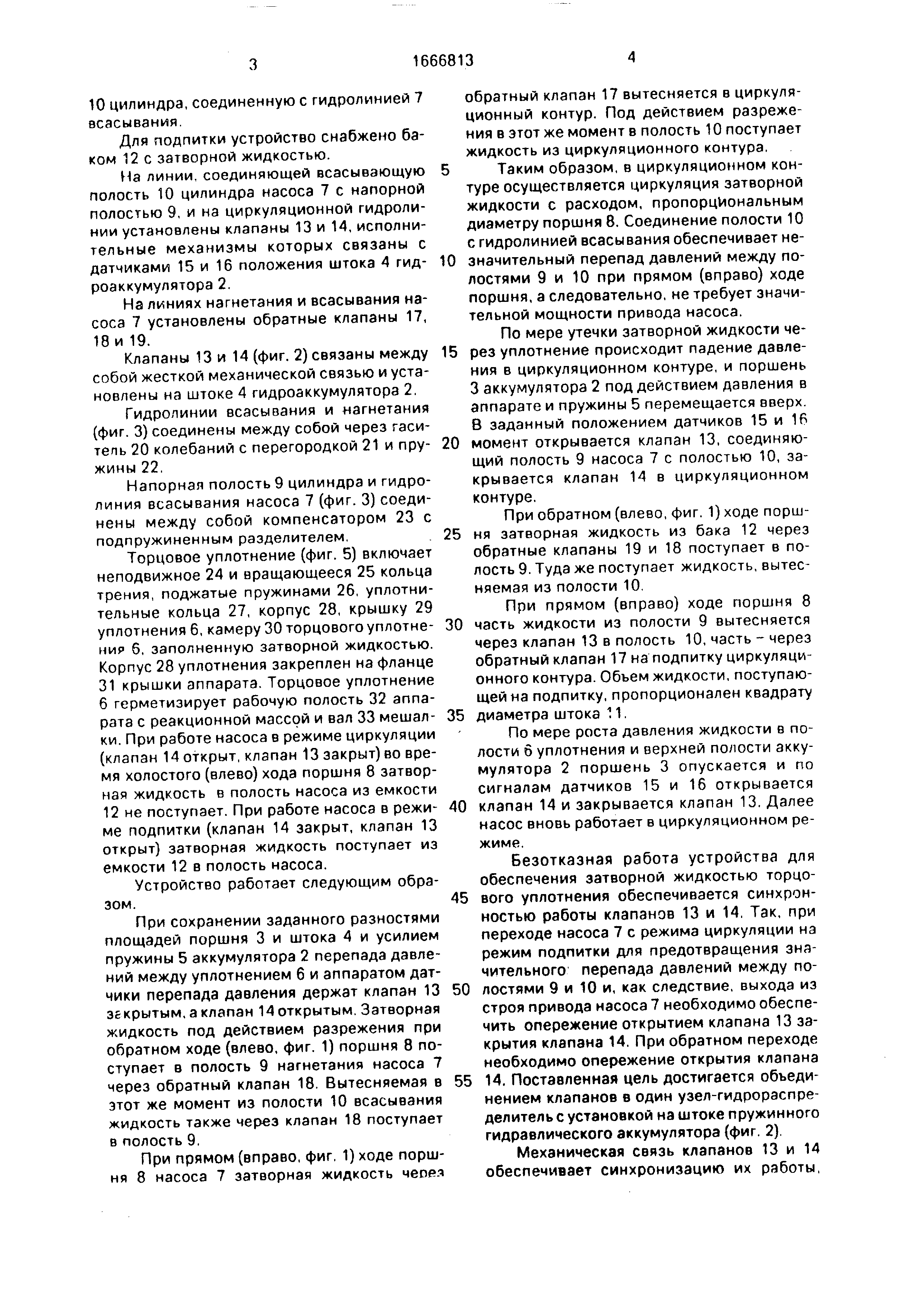 2 поршень 3 опускается и по сигналам датчиков 15 и 16 открывается 0 клапан 14 и закрывается клапан 13. Далее насос вновь работает в циркуляционном режиме . Безотказная работа устройства для обеспечения затворной жидкостью торцо5