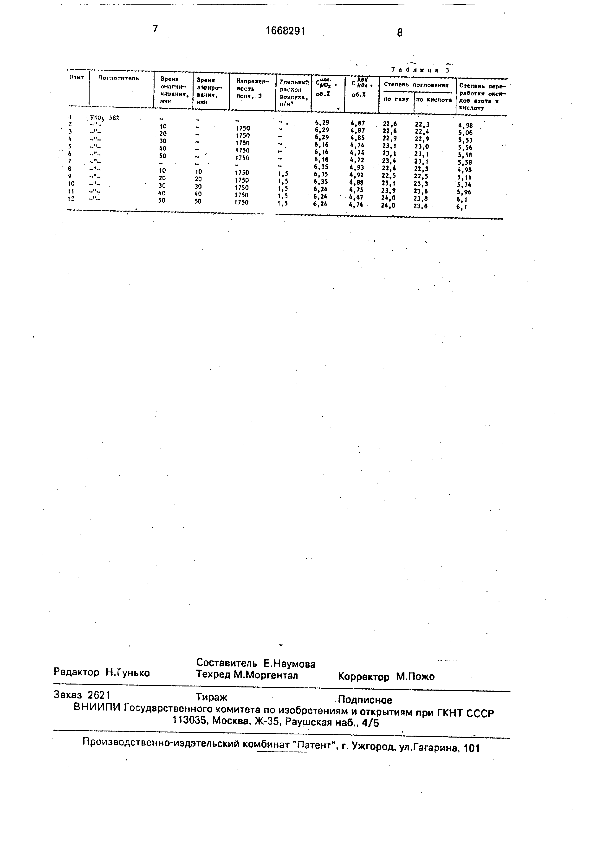 расходе 0,2-2,0 м3 на 1 м3 жидкости при Н-1500-2500 Э. 5 Приведенные в табл. 3 концентрации нитрозного газа и азотной кислоты соответствуют