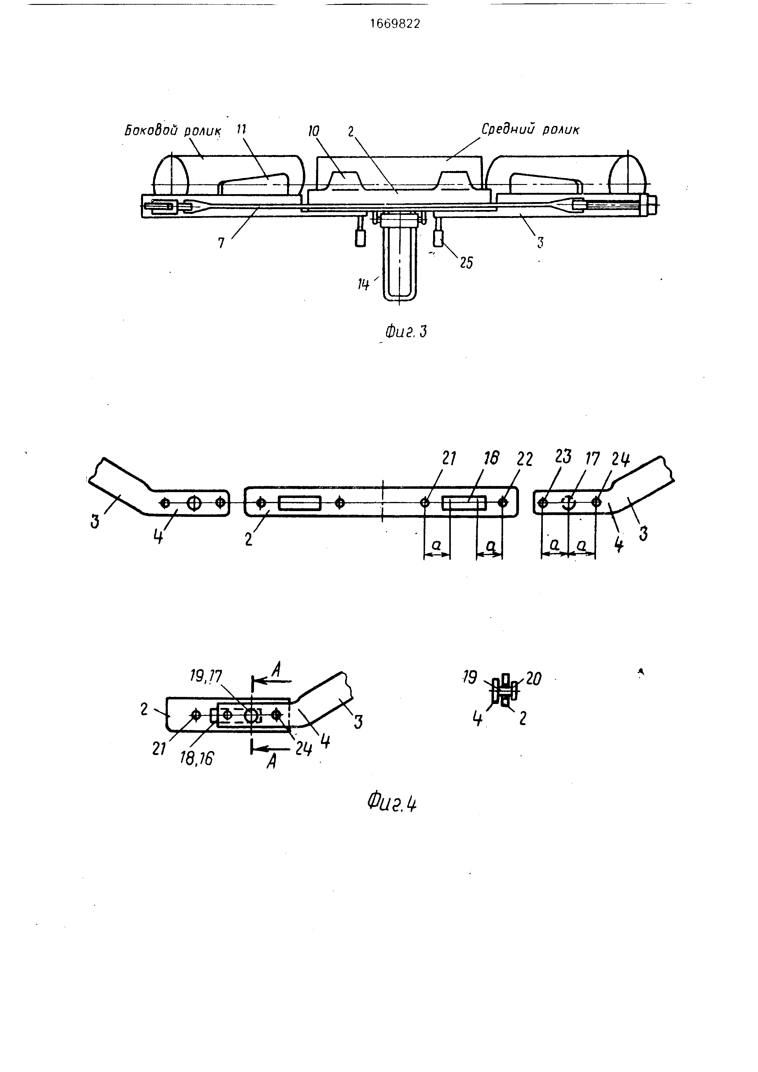 равен S. т.е. толщине опорных элементов 10 и 11. В этом случае замена боковых роликов